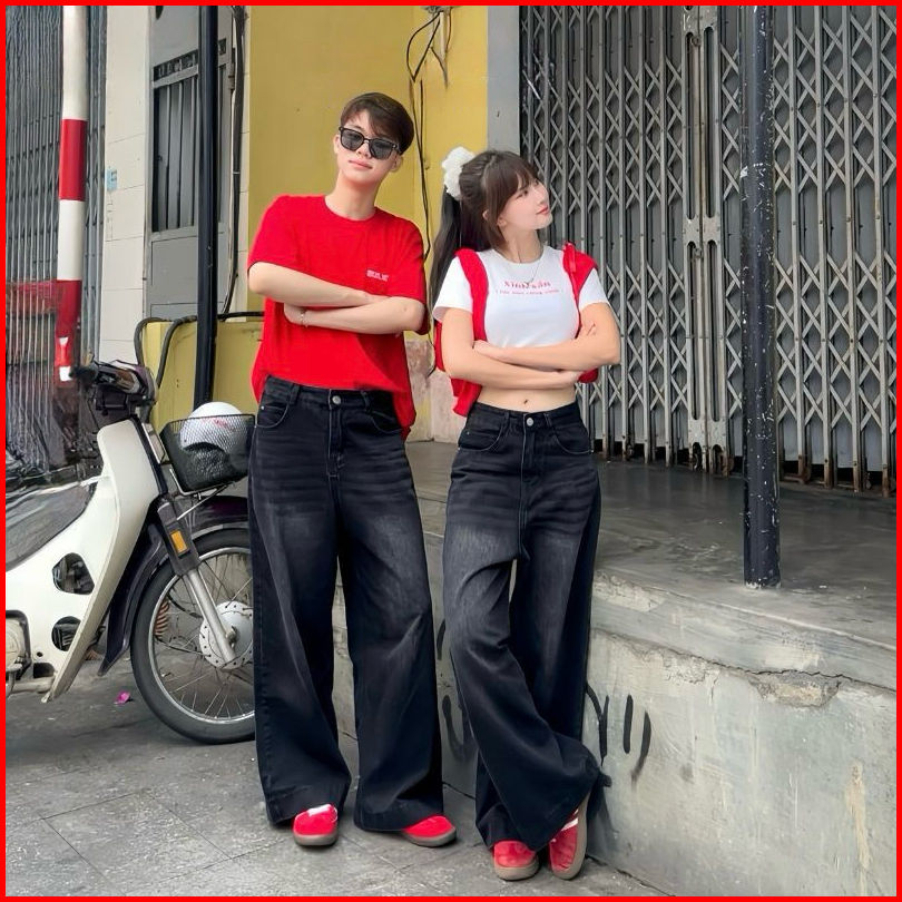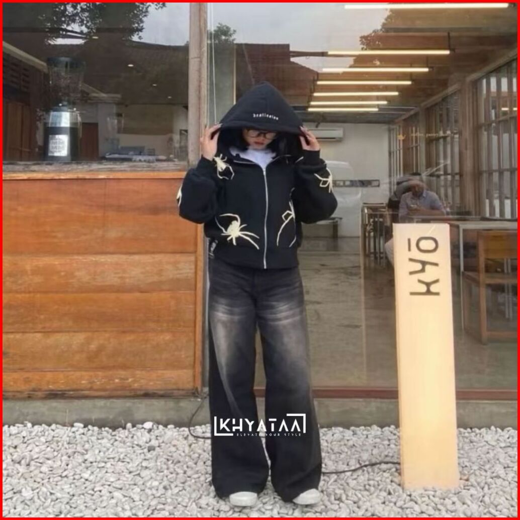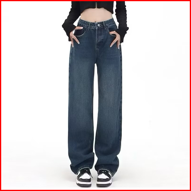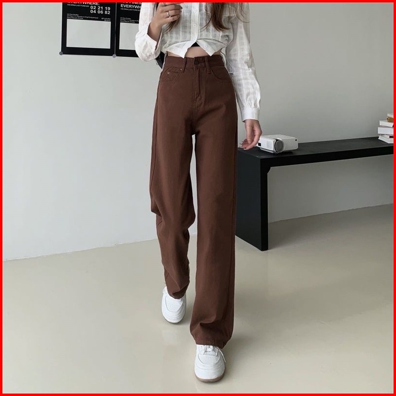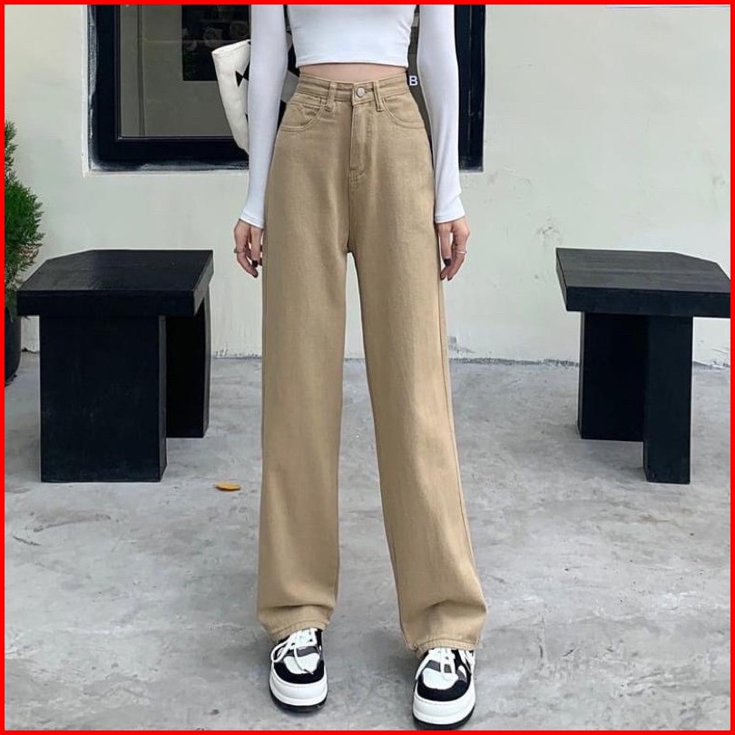 Khyataa - Unisex Celana Kulot Jeans Highwaist Loosee Korean Baggy Straight Jeans