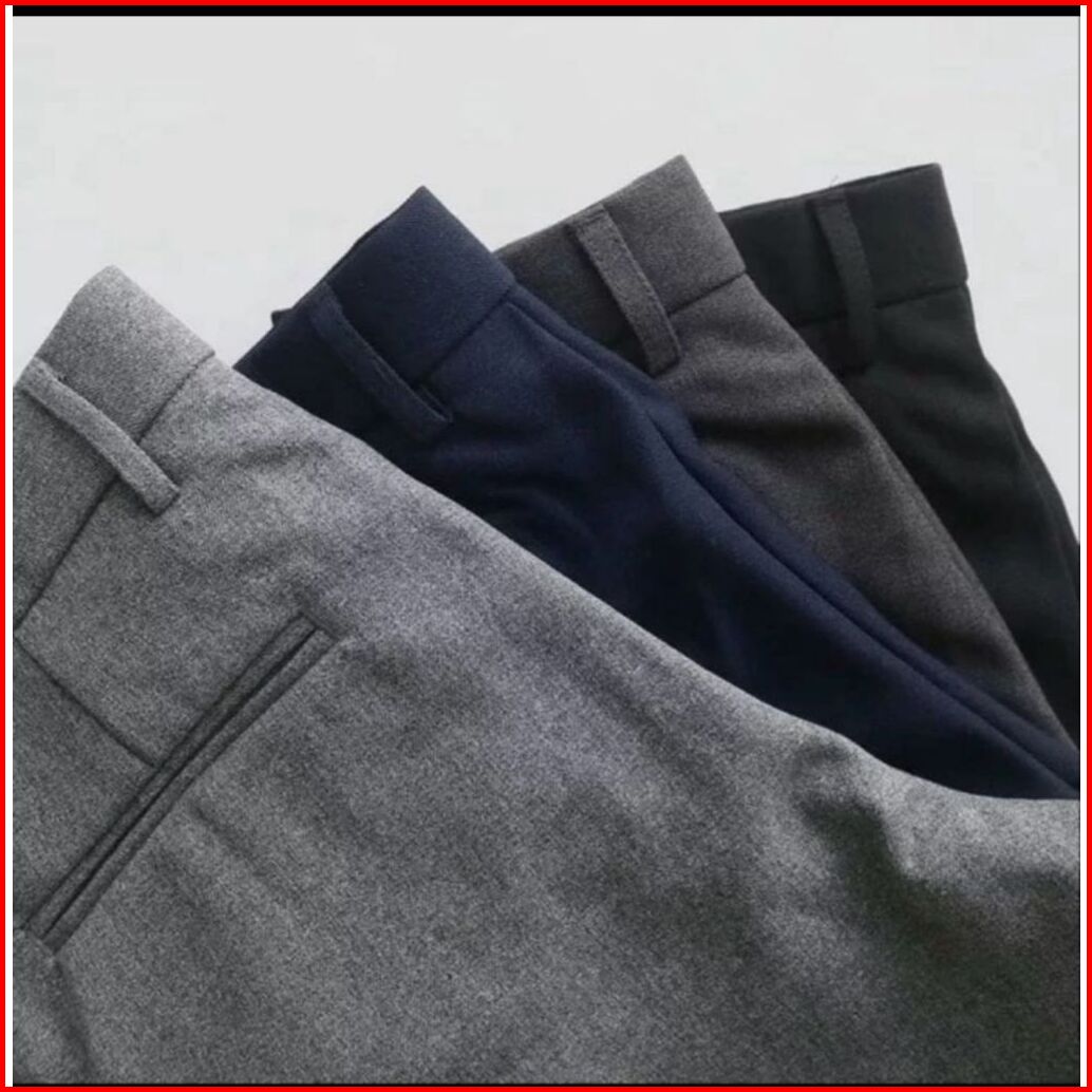 Celana Panjang Formal Pria Semi Biggy Bahan Woll Hitam Krem Abu Tua Size 27-38
