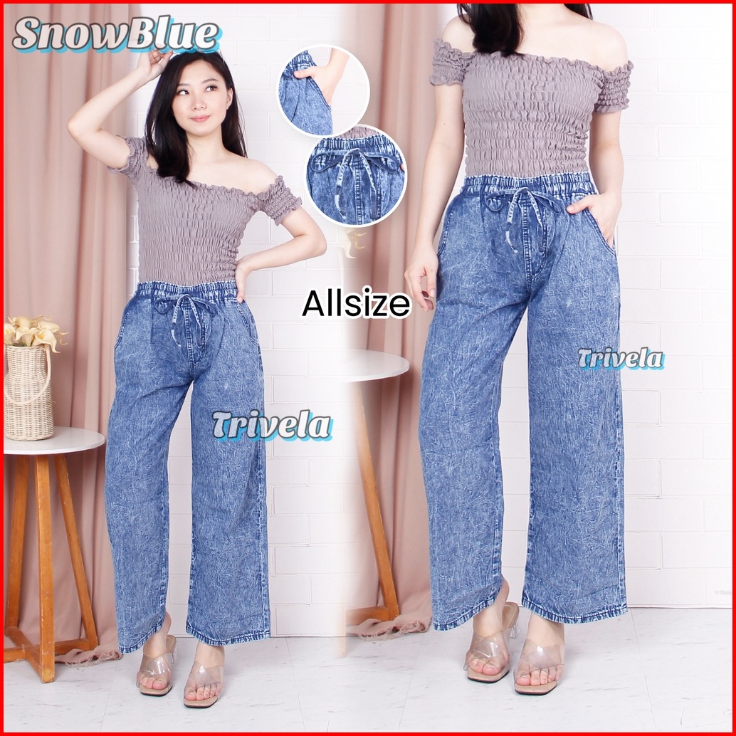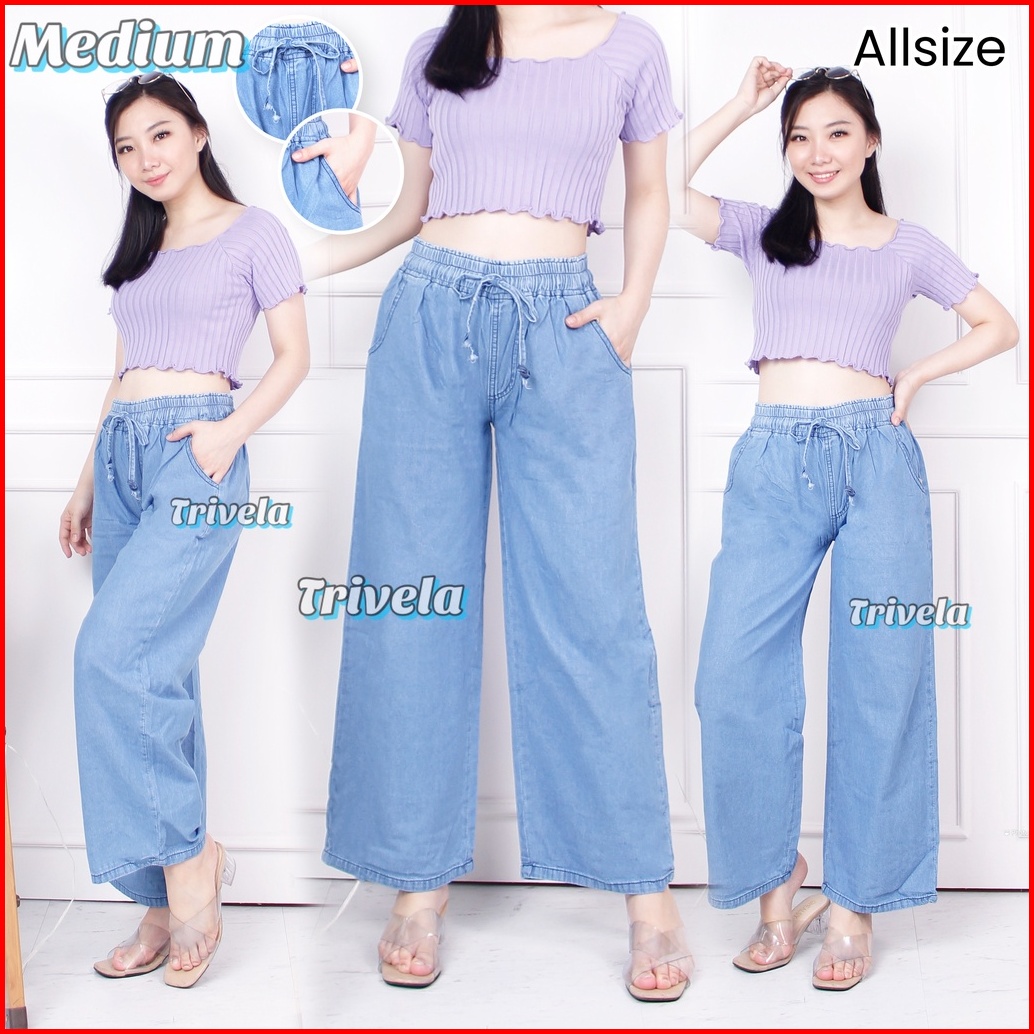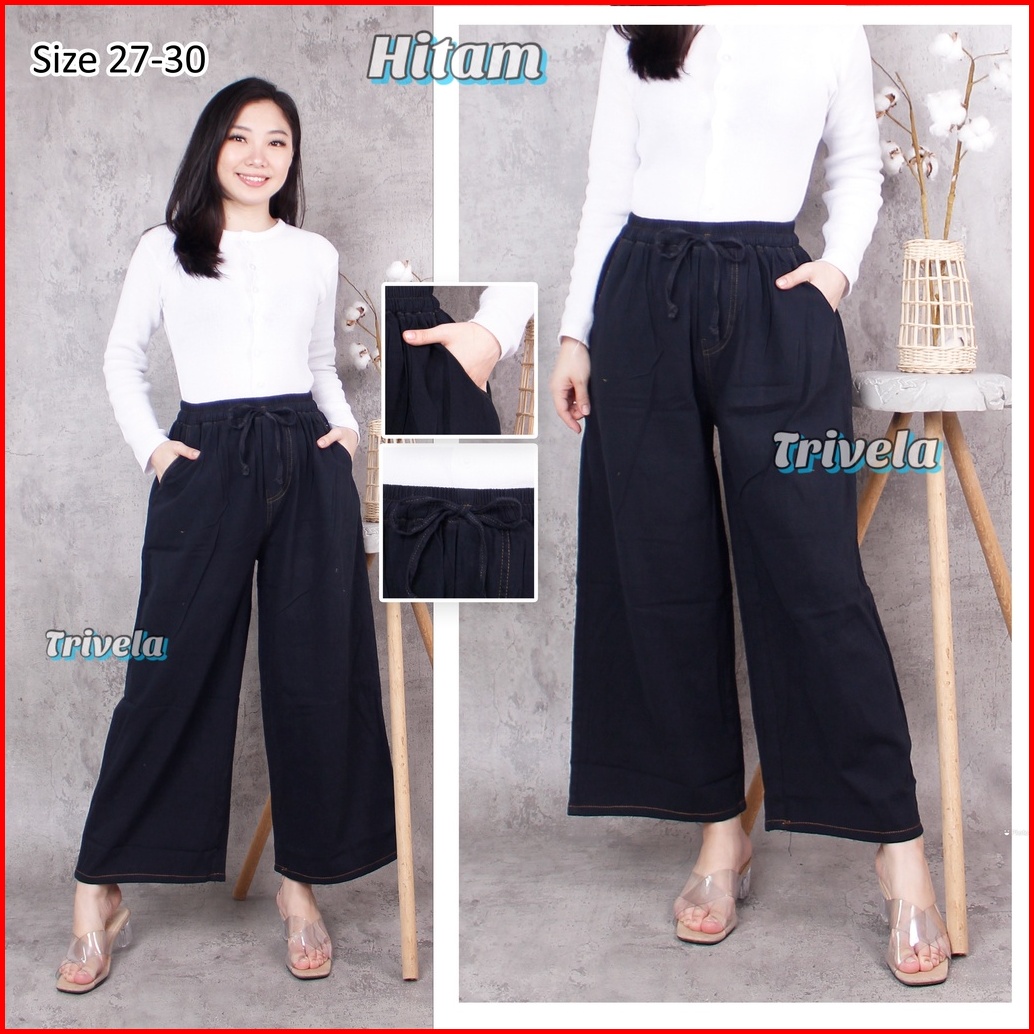 Jeans Kulot Masa Kini - Jeans Kulot All Size - Pinggang Karet - Tali Depan - Denim Jeans Karetallsize