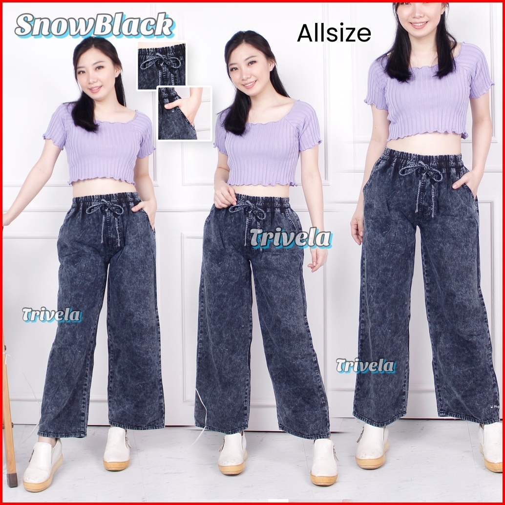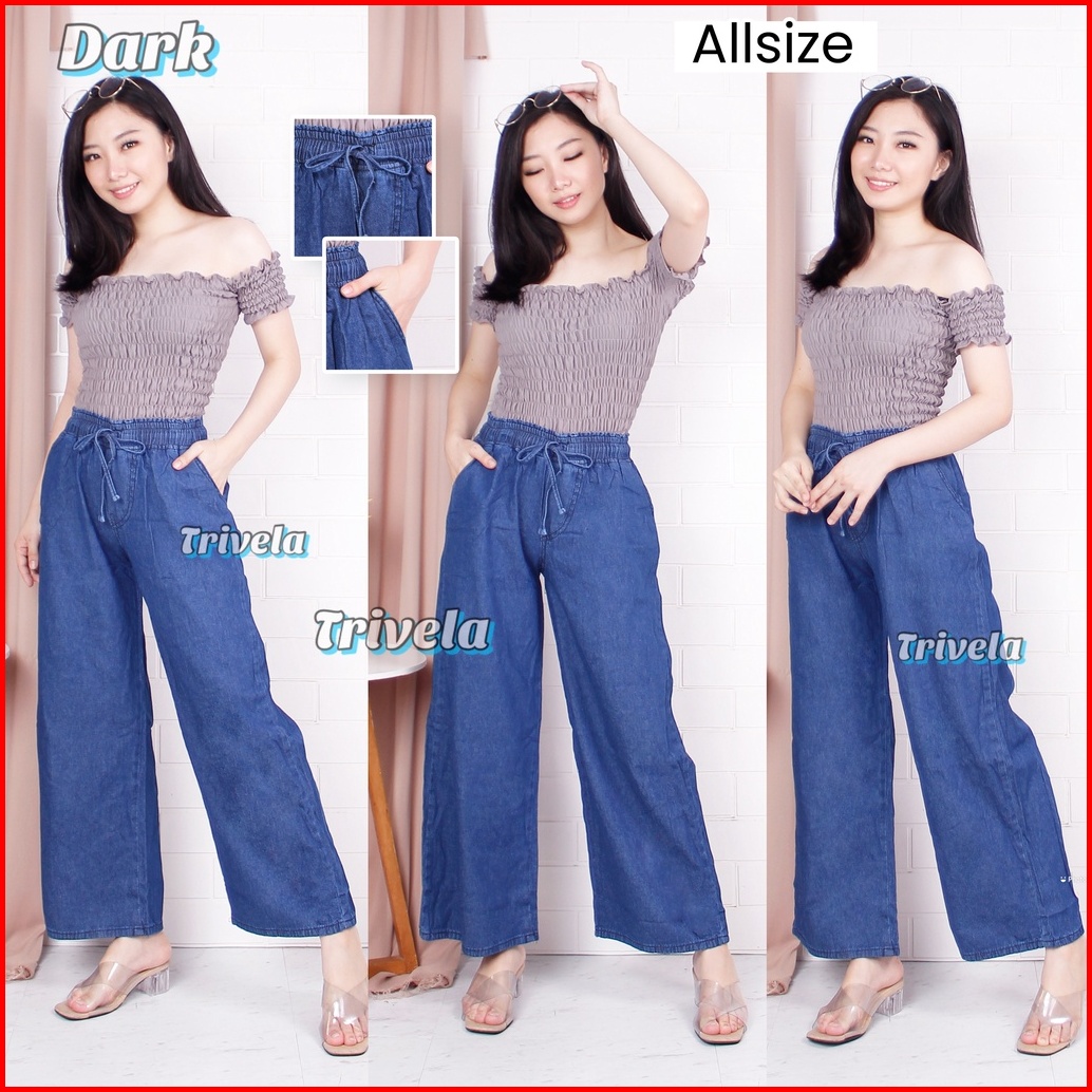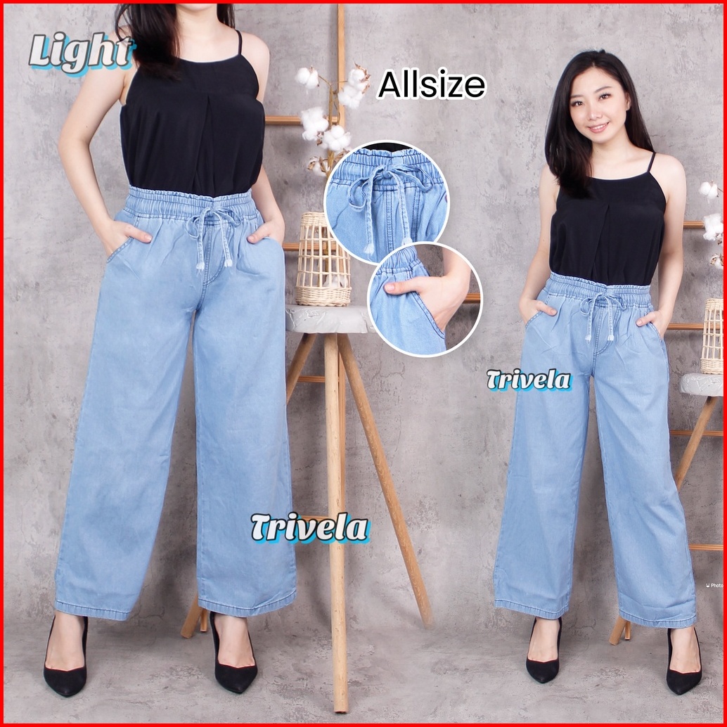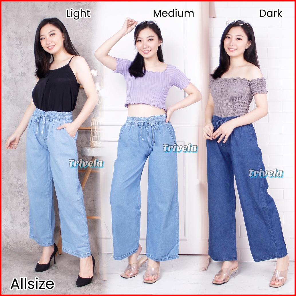 Jeans Kulot Masa Kini - Jeans Kulot All Size - Pinggang Karet - Tali Depan - Denim Jeans Karetallsize