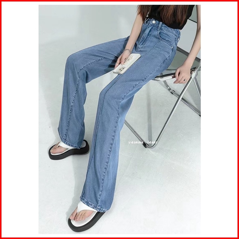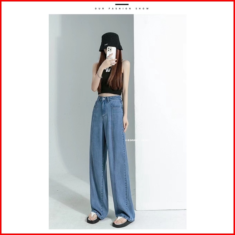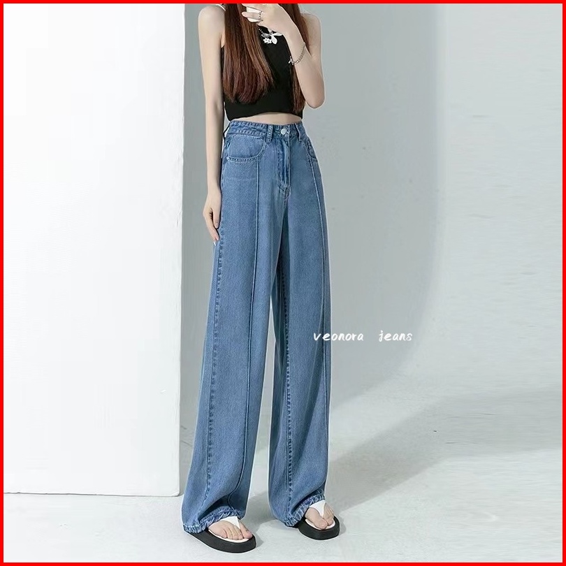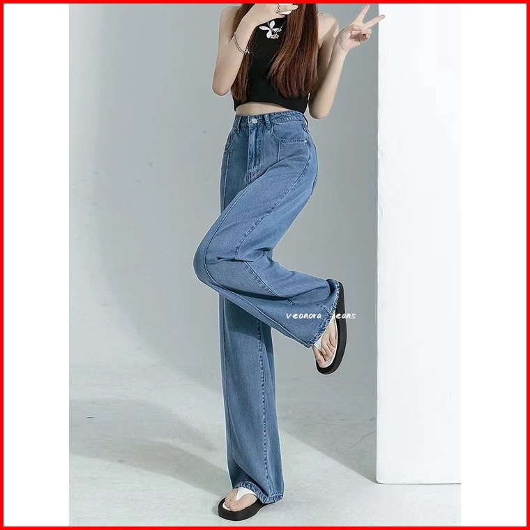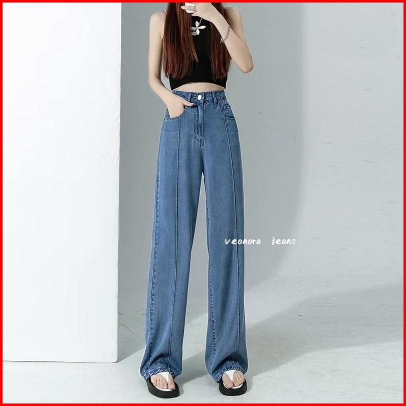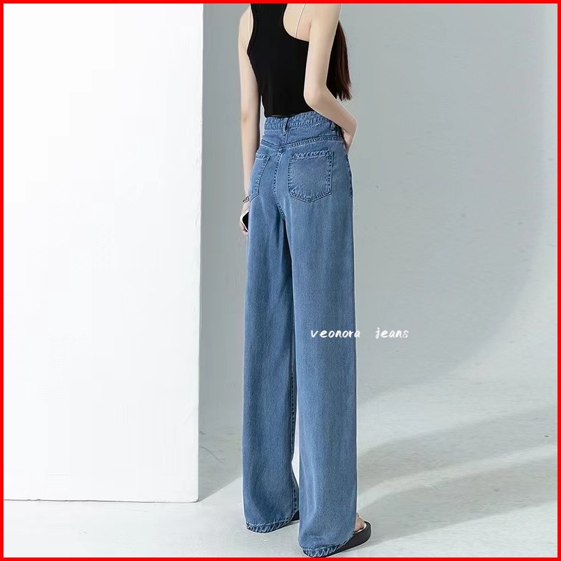 Korean Style Kasual High Waist Wide Leg Celana Kulot Straight Loose Kekinian Celana Jeans Wanita