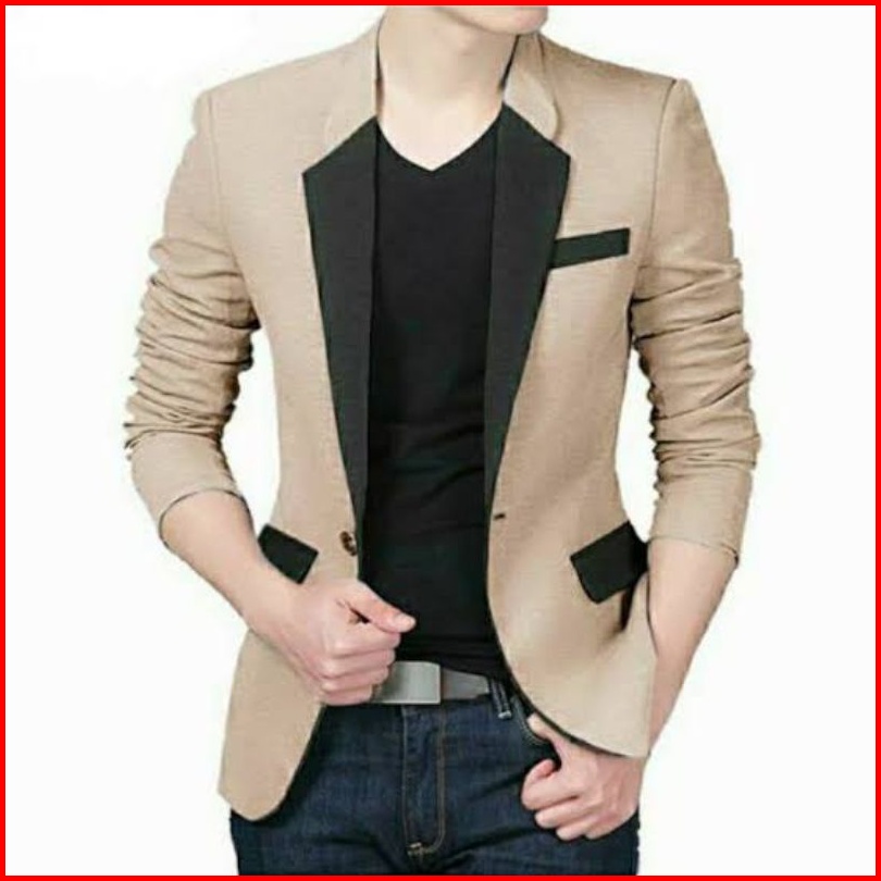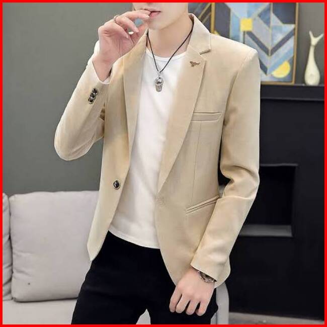 Jas Cream Blazer Pria Jas Formal Pria Blazer Slim Fit Jas Kpop