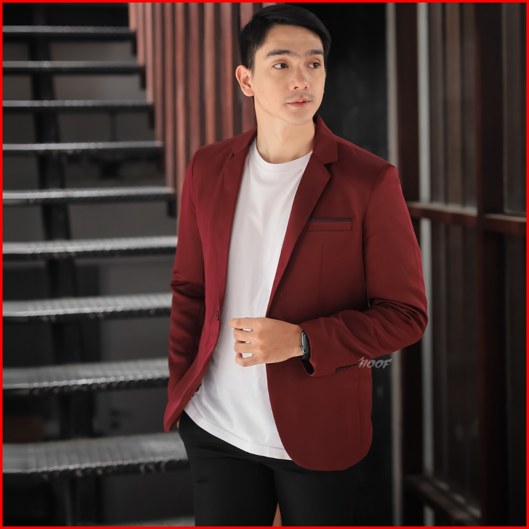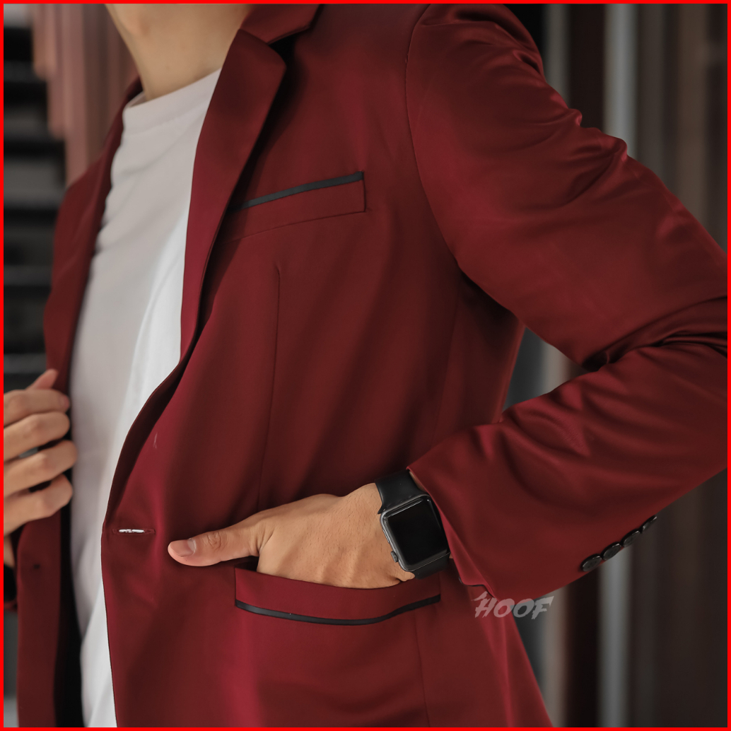 Hoof Jas Pria Maroon Slimfit Suit S