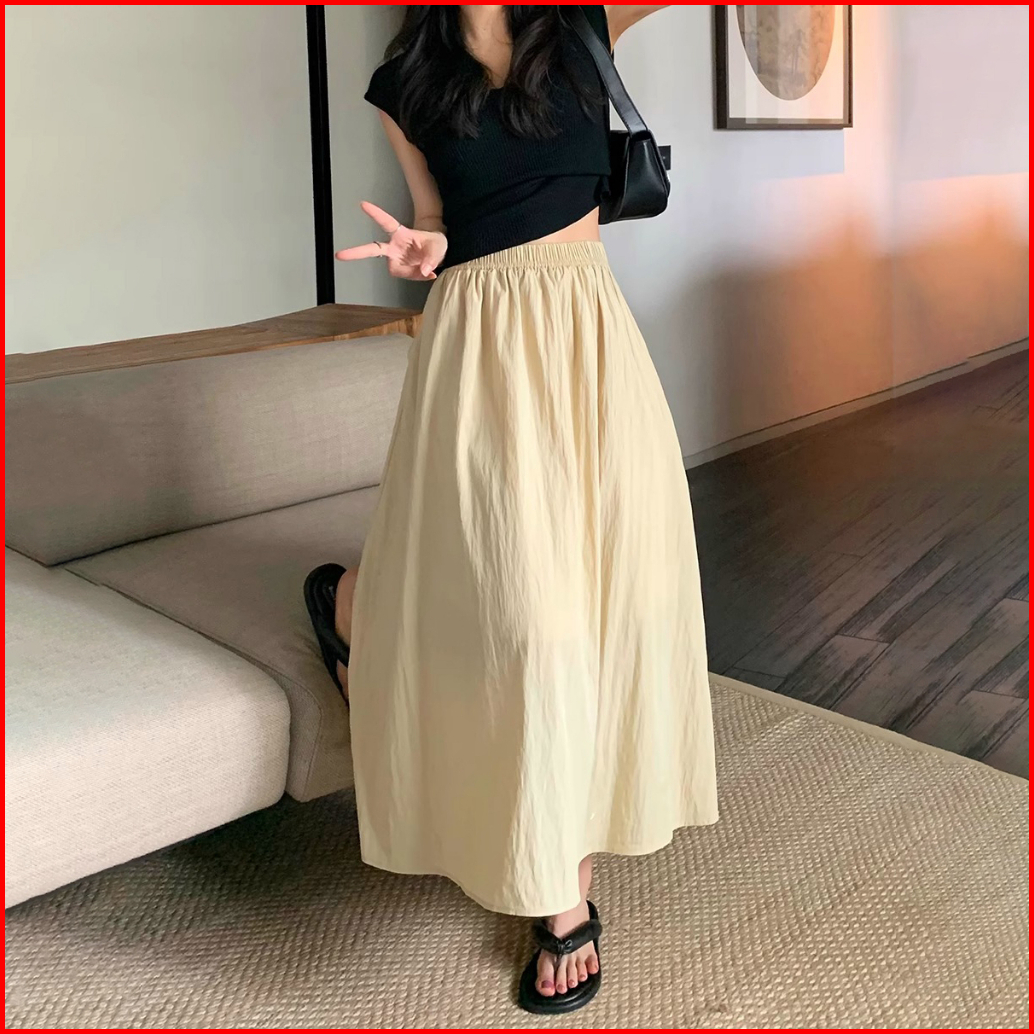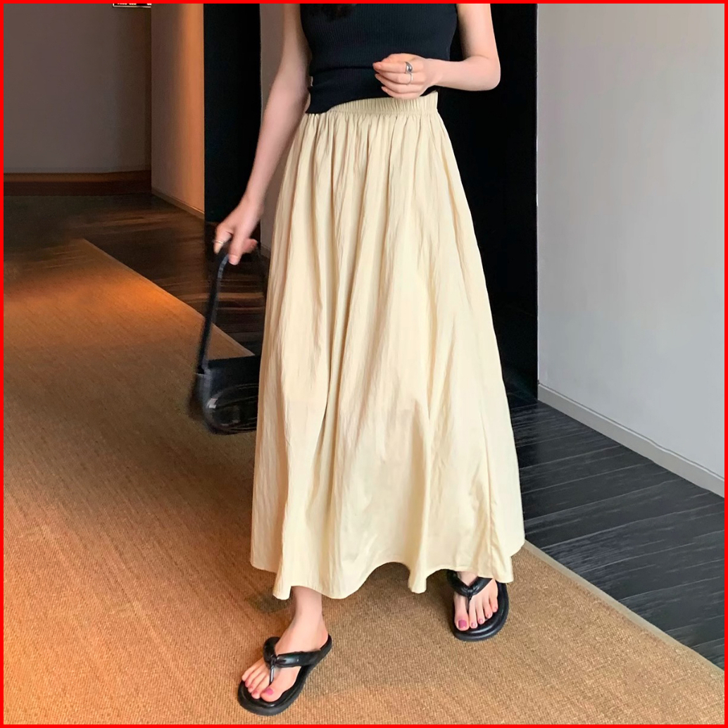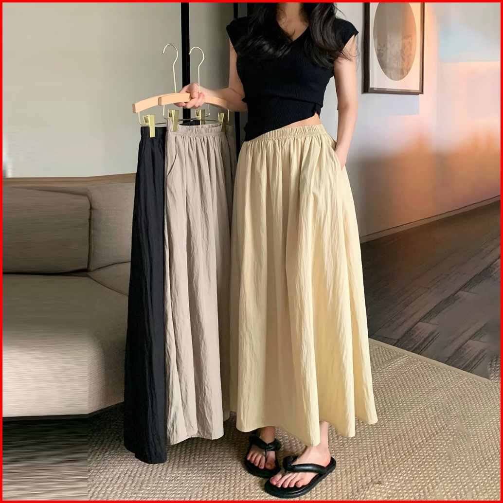 Rok Lipit Pelindung Matahari Tencel - Rok Panjang Wanita Pinggang Karet - Rok Gaya Korea Pinggang Tinggi