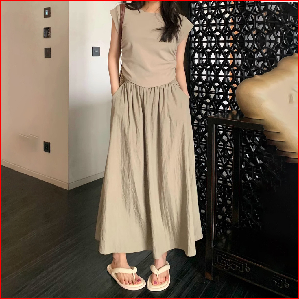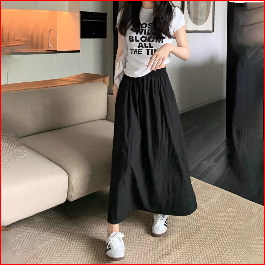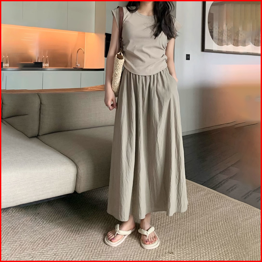 Rok Lipit Pelindung Matahari Tencel - Rok Panjang Wanita Pinggang Karet - Rok Gaya Korea Pinggang Tinggi