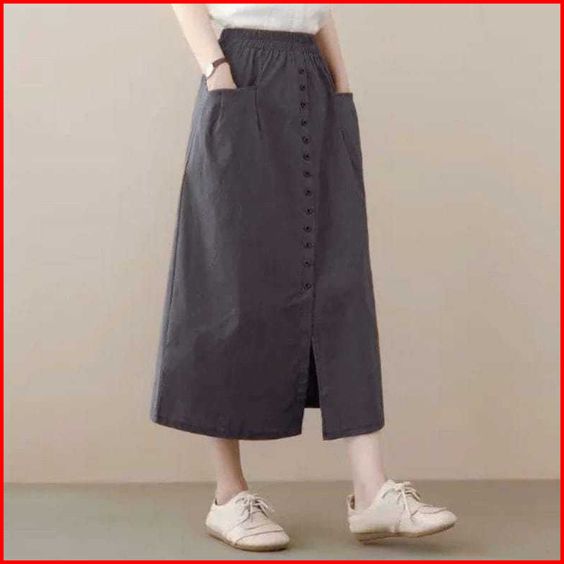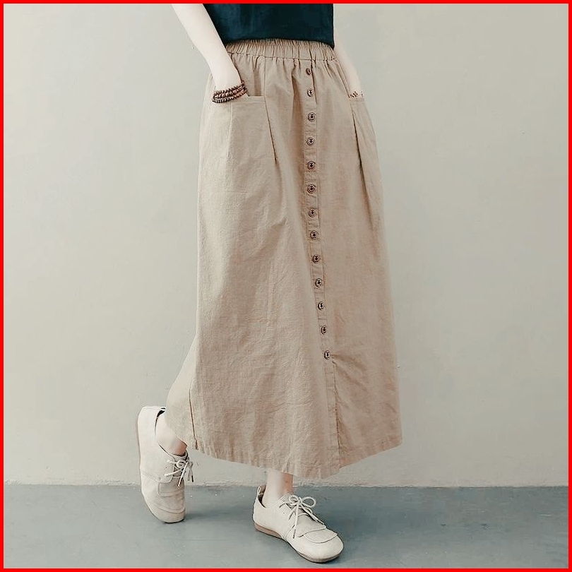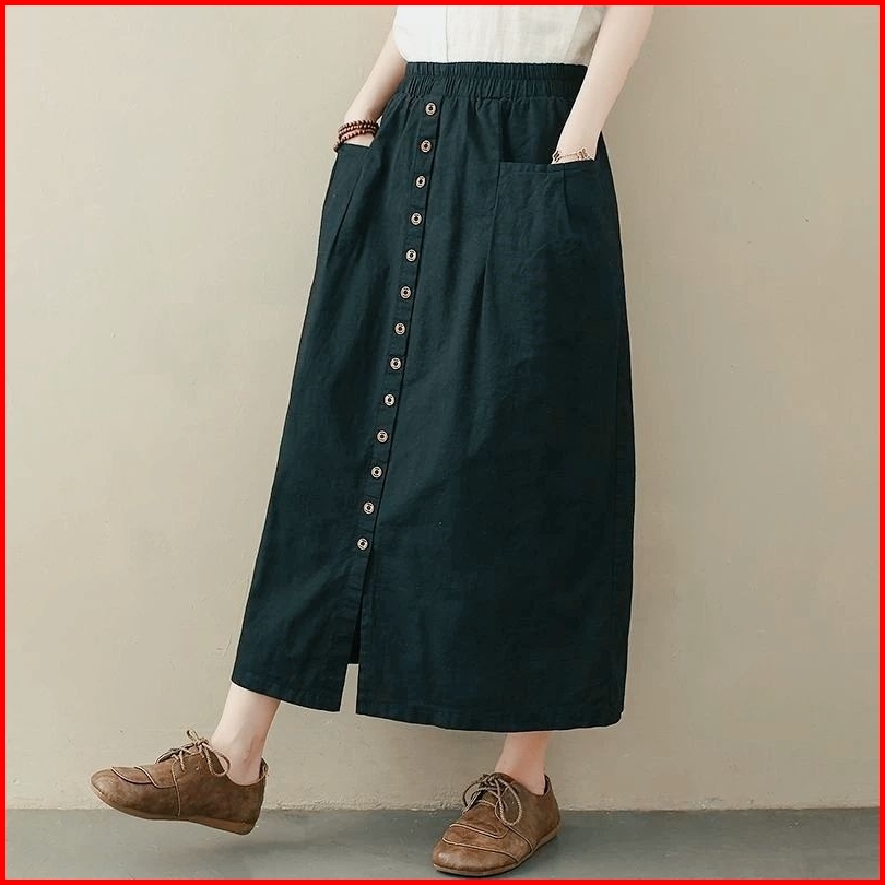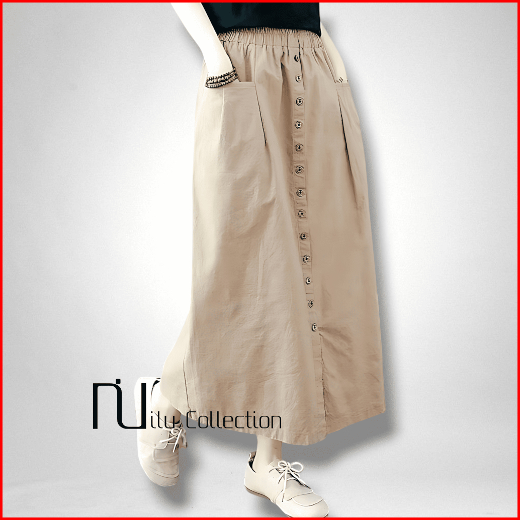 Rok Korean Style Maxi Skirt Rok A-line Panjang Wanita Rok Katun Twill Premium Quality Kekinian