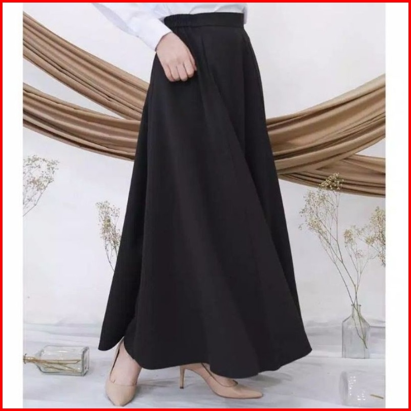 Rok Payung Panjang Jumbo Korean Style Hitam Polos Bahan Hyget Tebal Premium Rok Mayung Wanita Lebar
