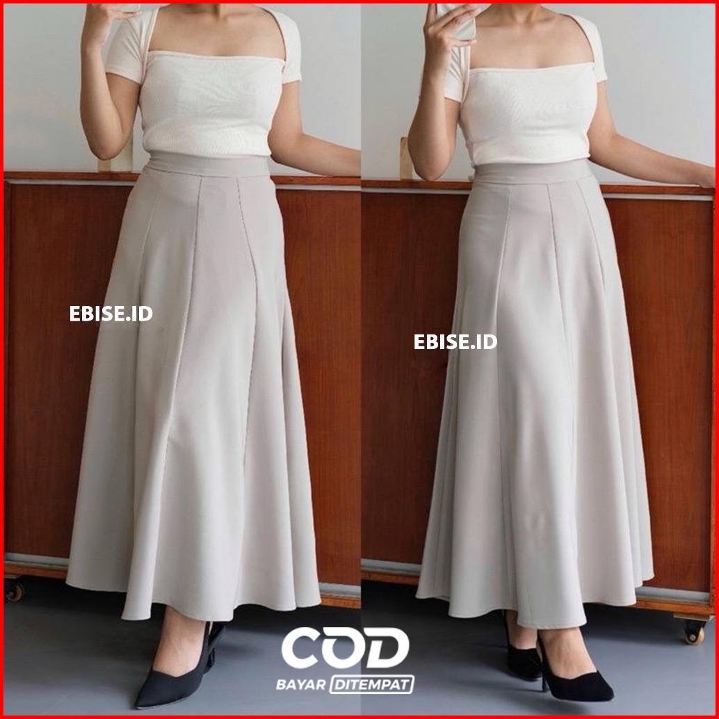 Audy Skirt Rok Flare Wanita Korean Loose Maxi Skirt - Rok Plisket Cewek Anti Kusut Rok Basic Polos Panjang