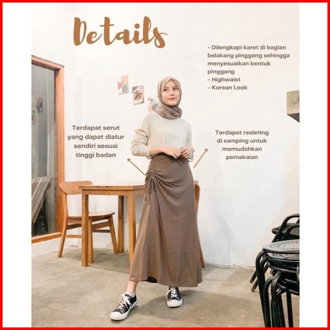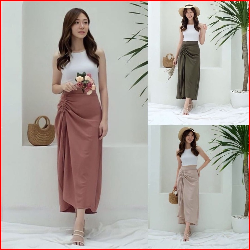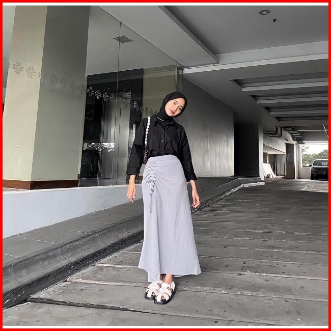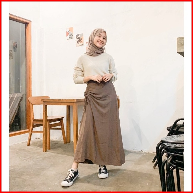 Tamara Skirt - Rok Serut Casual Korean Look - Midi Maxy Skirt - Rok Wanita Korean Terbaru - Rok Crinkle