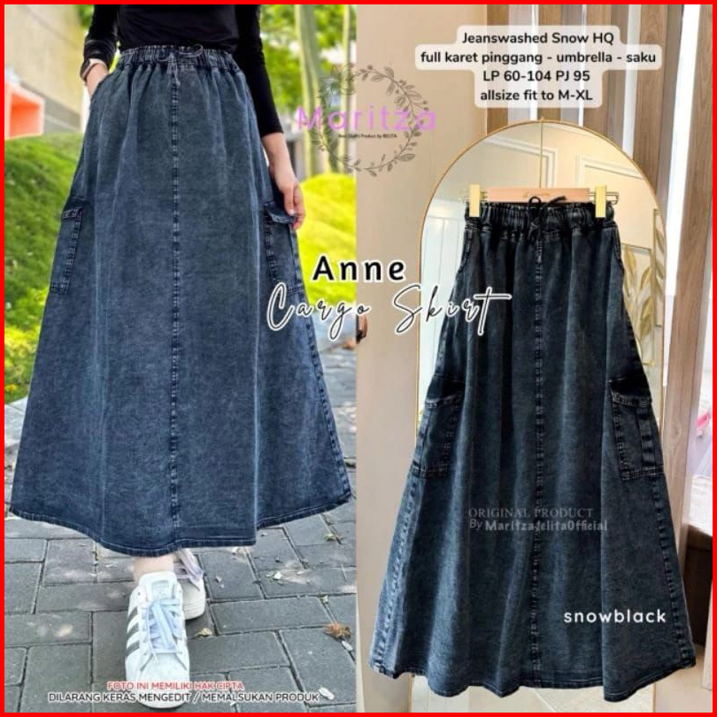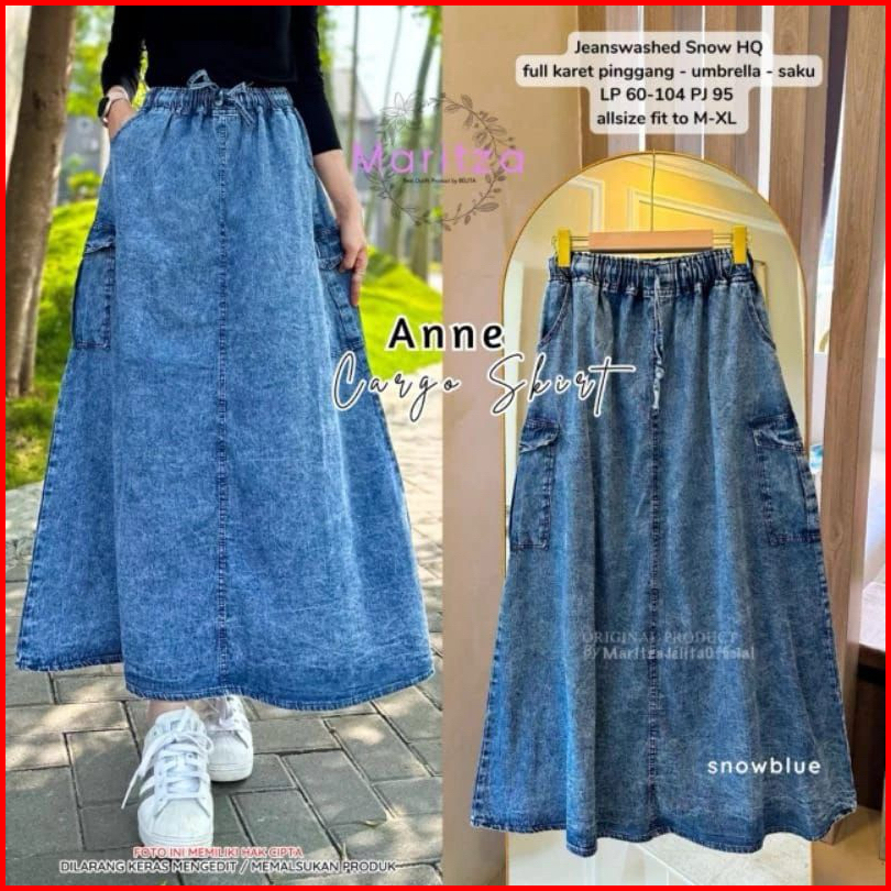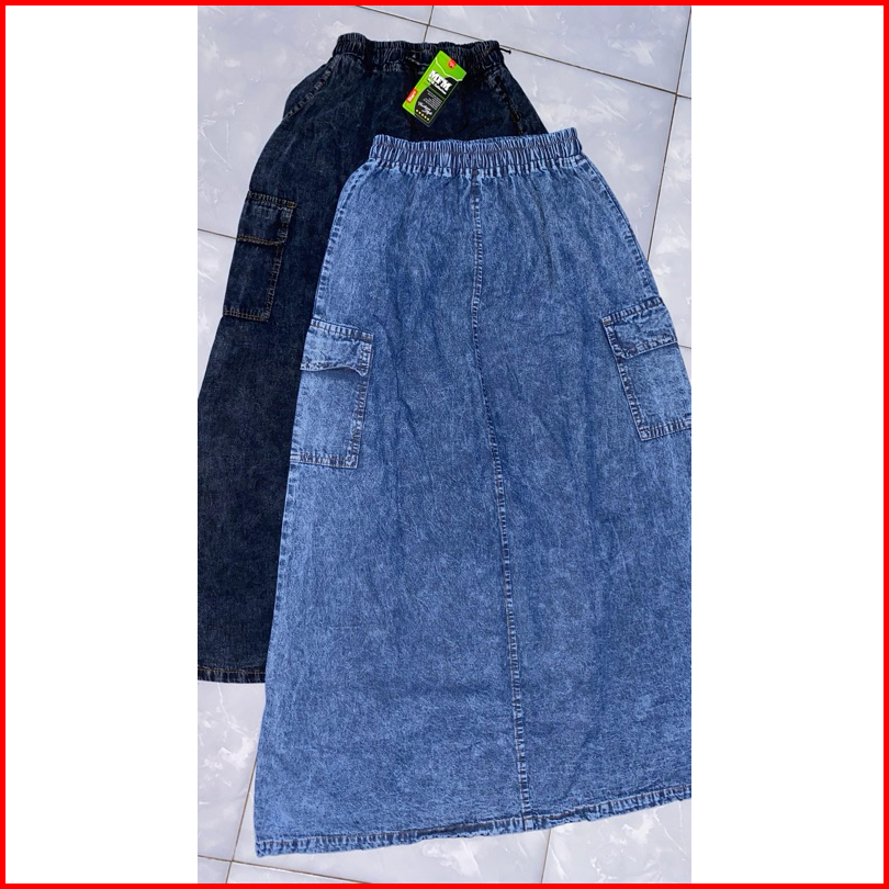 Rok Cargo Jeans Wanita Pinggang Karet Rokcargo Tanpa Belahan