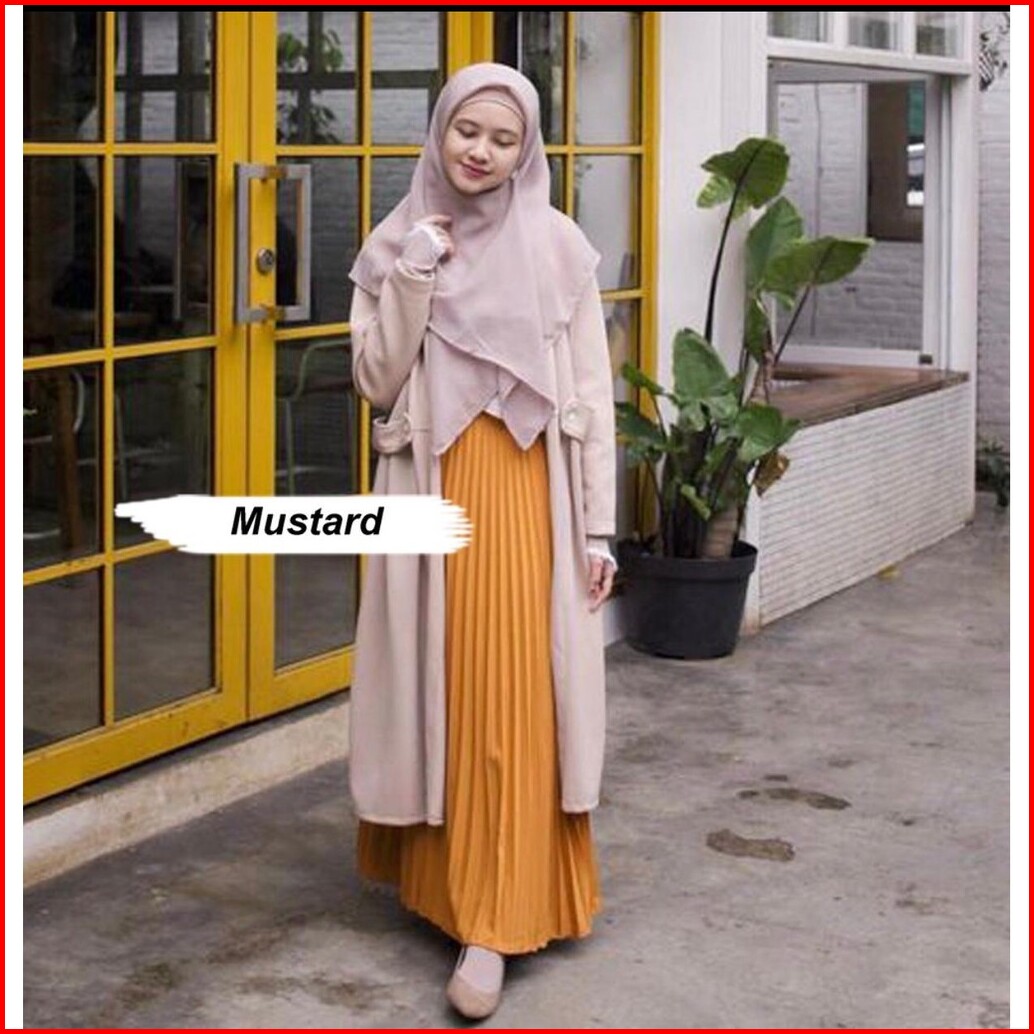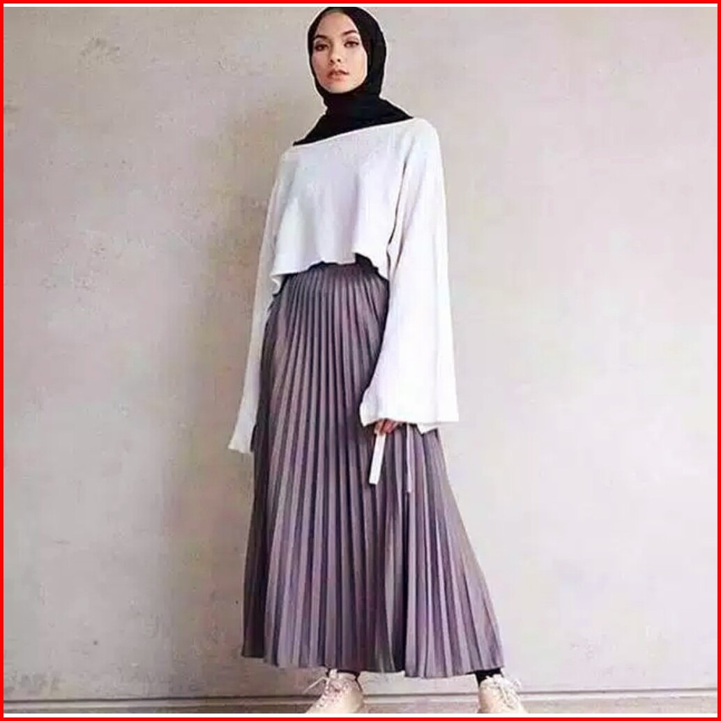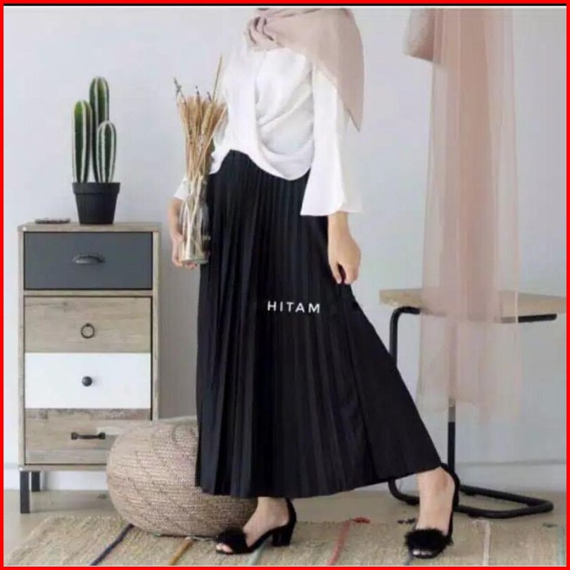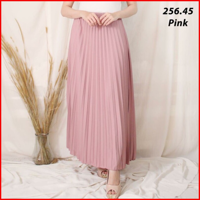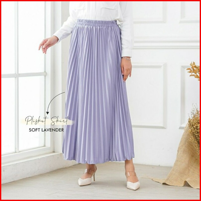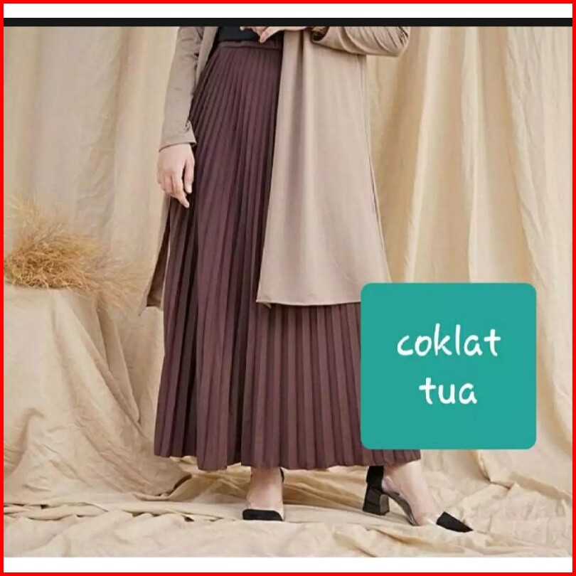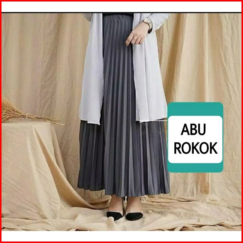 Jnw-rok Plsket Premium 256b Bahan Hyget Premium Tebal Fit S-xxl Pinggang Karet Panjang Rok 90-92cm