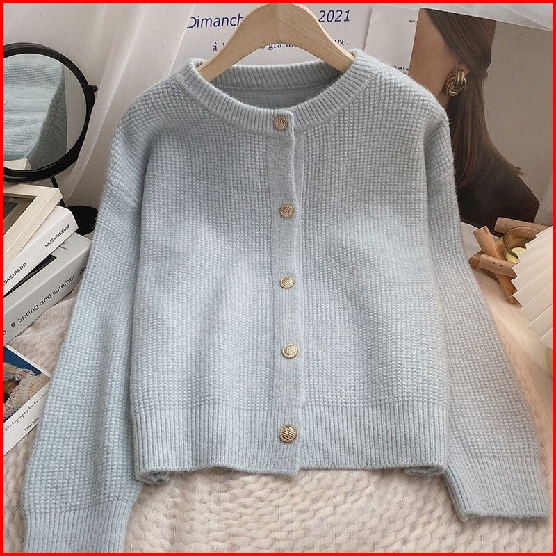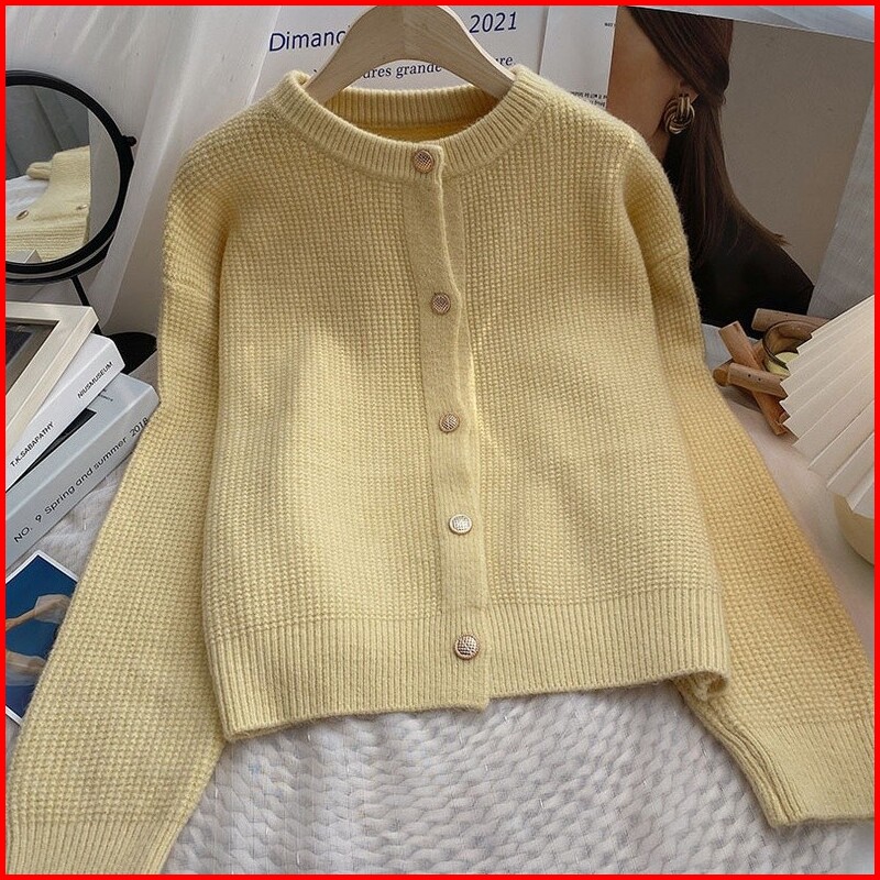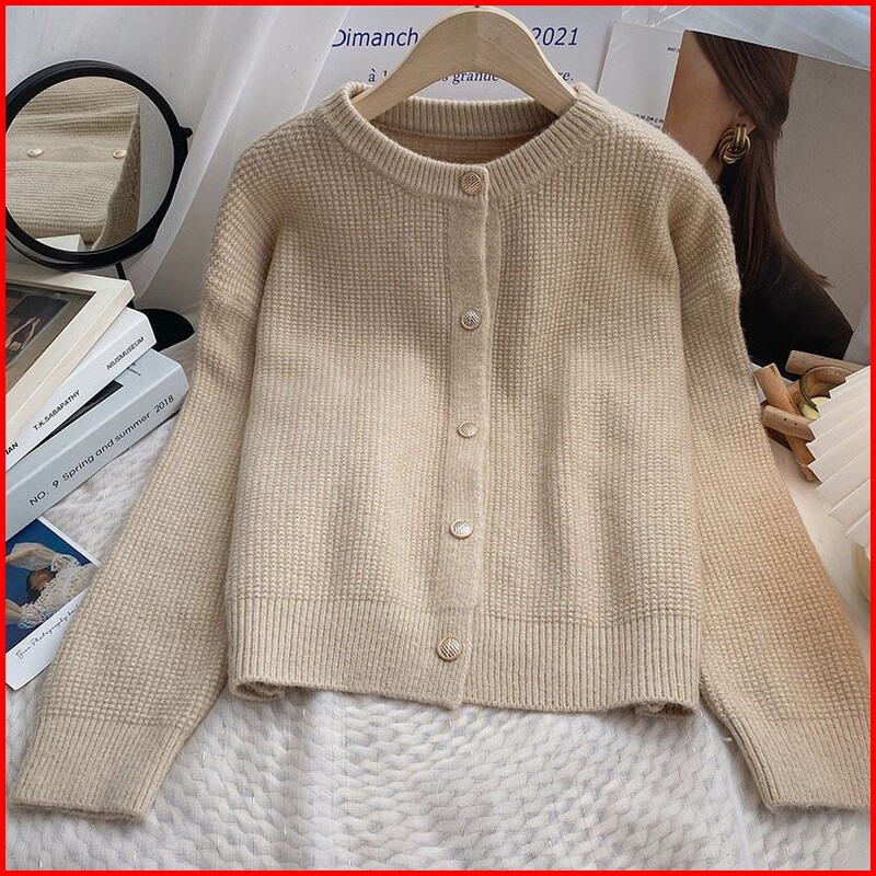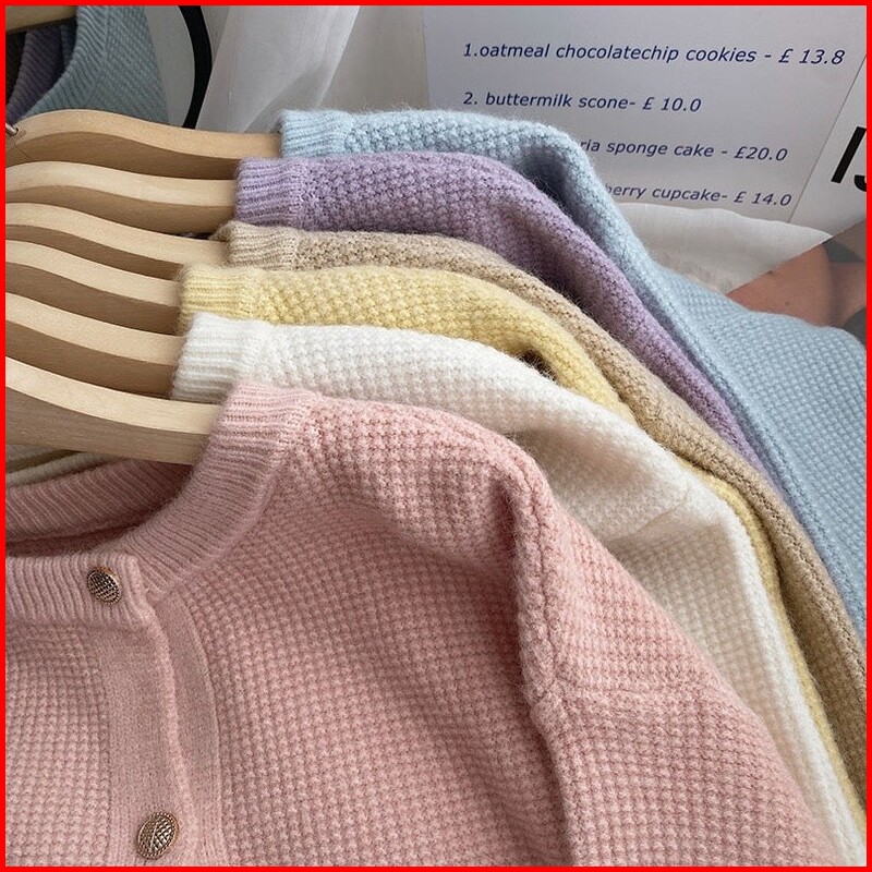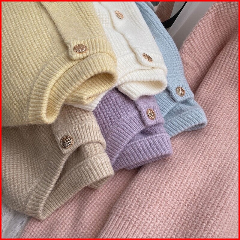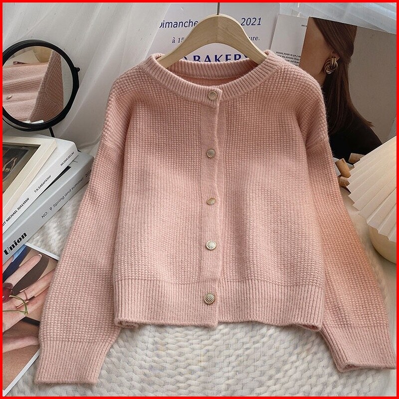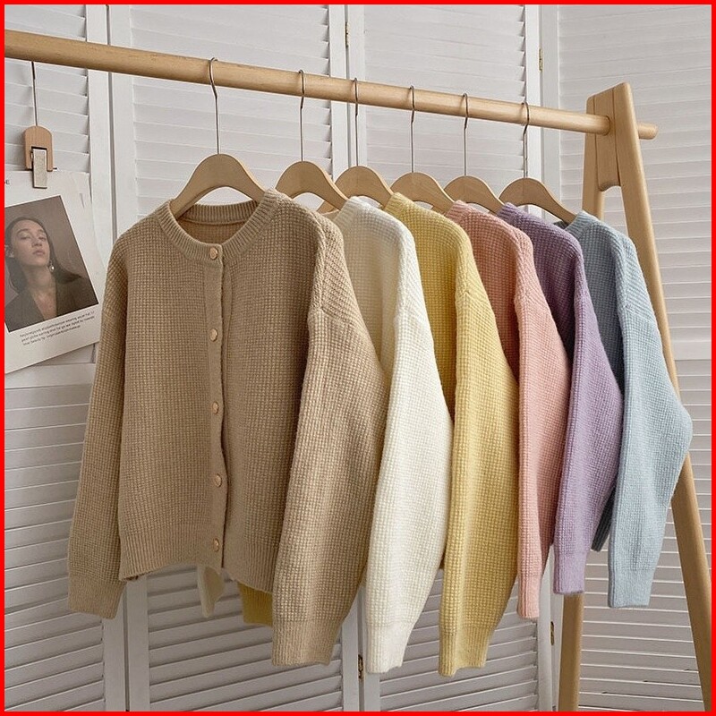 Atasan Sweater Rajut Wanita Jaket Sweater Atasan Kardigan Rajut Warna Polos Gaya Korea Wanita