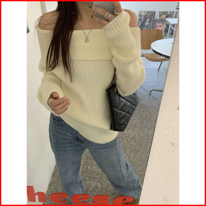 Ready Langsung Kirim - Elvie Off Shoulder Knit Sweater Top - Seoulchic.id