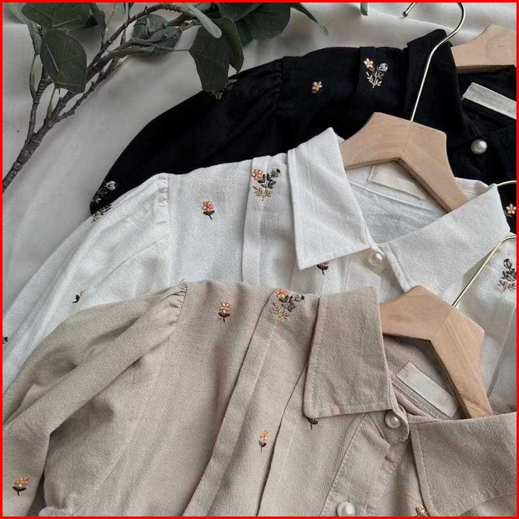 Kemeja Wanita Bordir Flower Kemeja Wanita Oversize Kemeja Wanita Lengan Panjang Atasan Wanita Remaja Kekinian Terbaru Ou