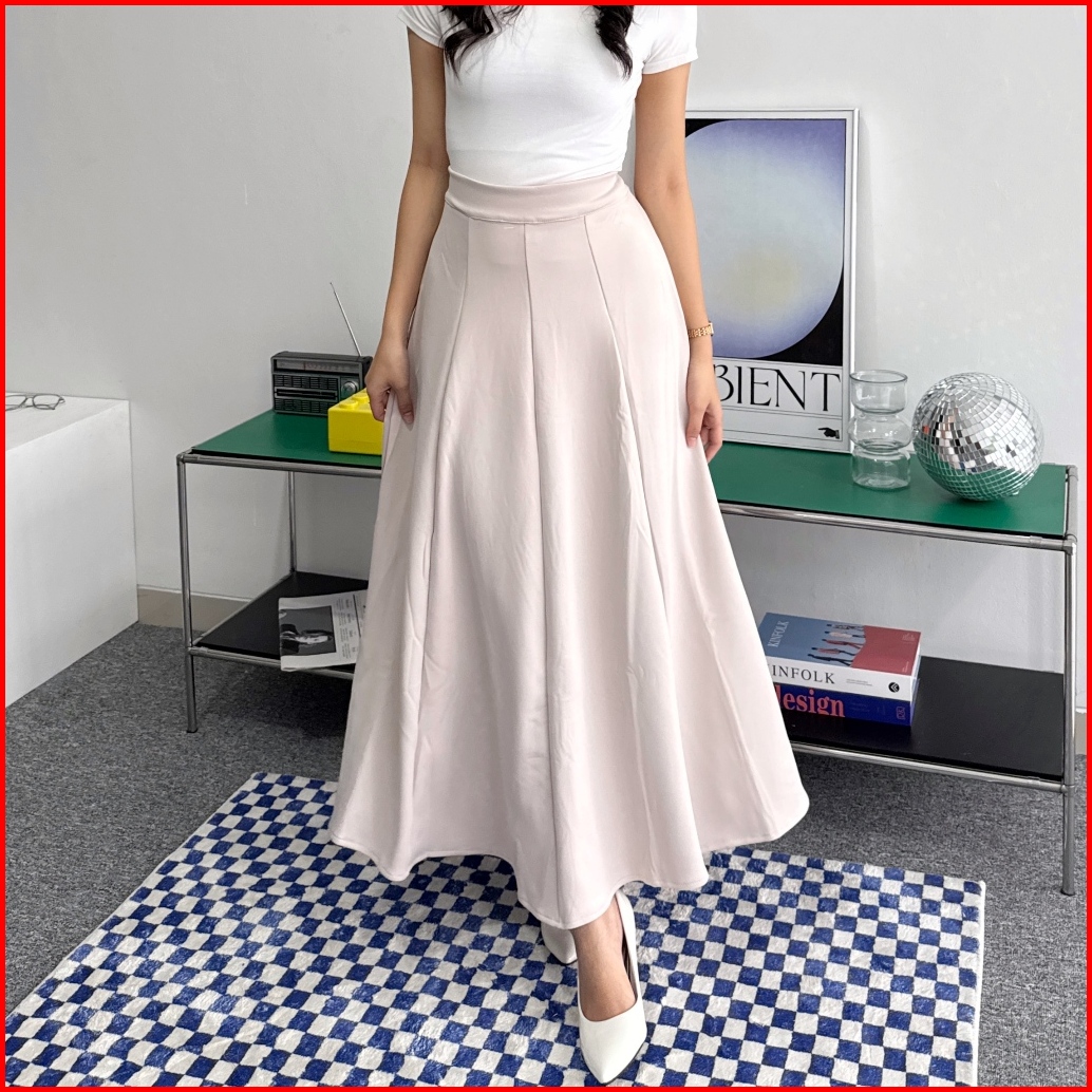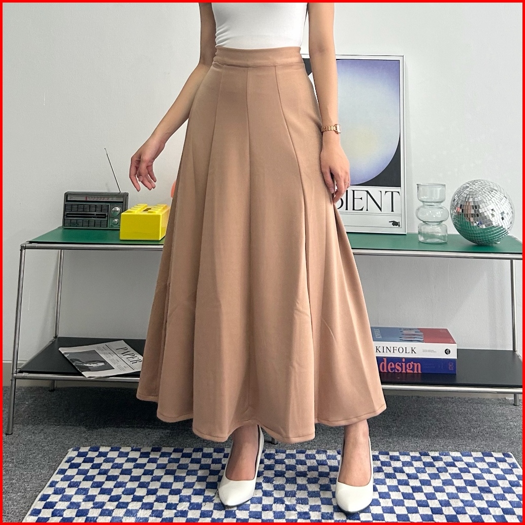 Audy Skirt - Haruka Skirt Korean Loose Maxi Skirt Rok Wanita Anti Kusut - Rok Flare Wanita - Rok Basic Polos - Maxi Skir