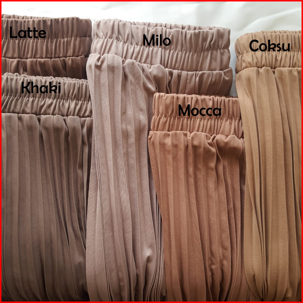 BLACK, NAVY, DARK GREY, BROKEN WHITE, EMERALD, ARMY, CHOCO, Dusty Pink, Mustard, TERACOTTA, DUSTY PURPLE, BOTOL, WHITE, WARDAH, Lavender, MATCHA, MAROON, LATTE, MAUVE, MILO, SILVER, GREEN TEA, Khaki, GREY, COKSU, Lime, DENIM, BIRU TOSKA, TOSKA TUA, TAUPE, ALMOND, UNGU TERONG, Lilac, BABYPINK, SALEM, CREAM, BIRU ELEKTRIK, MOCCA, CARAMEL, REDFLAG