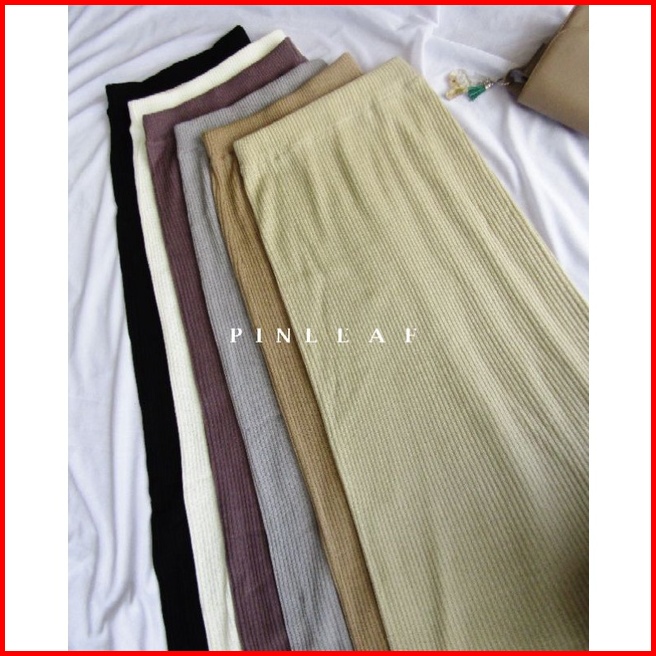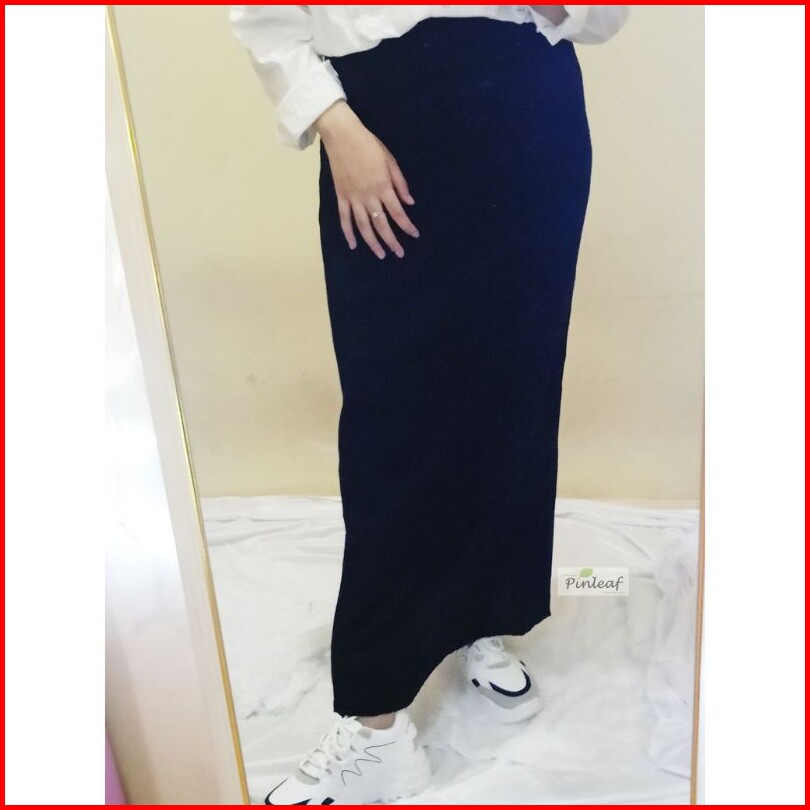 Rok Rajut Panjang Motif Salur Warna Gelap