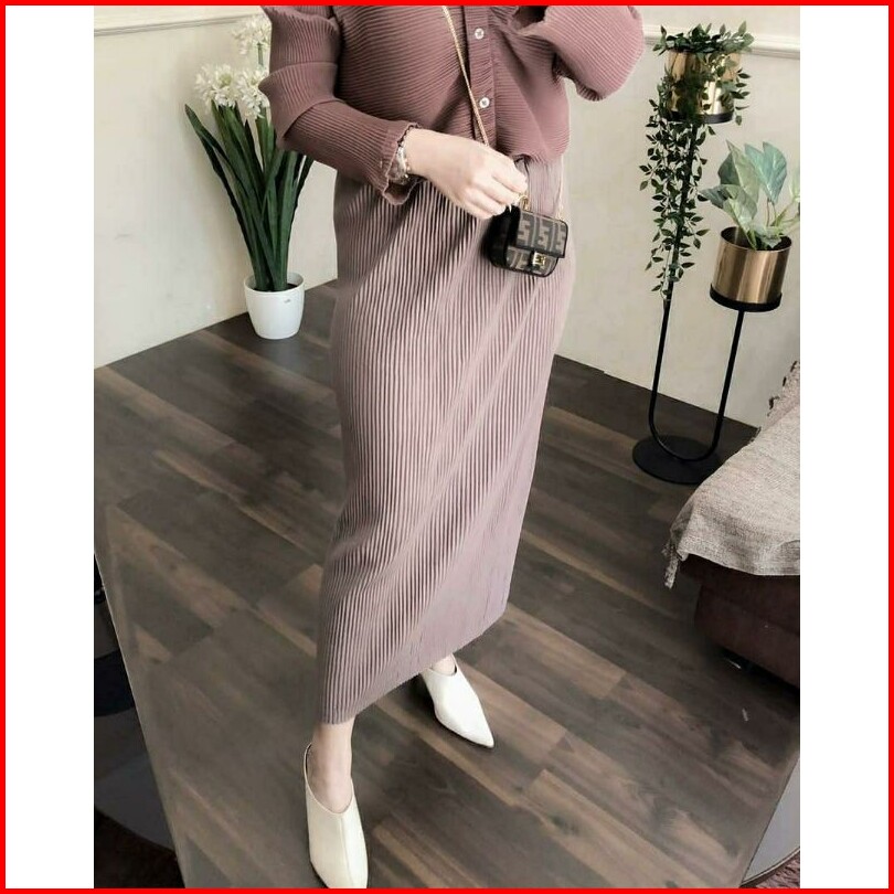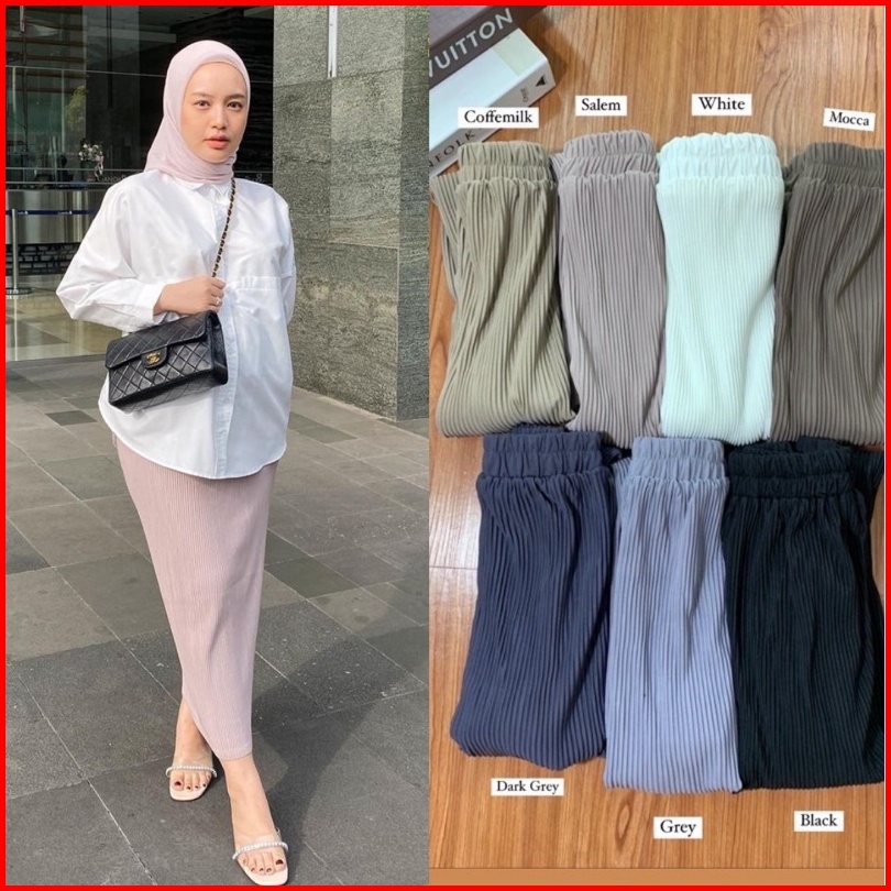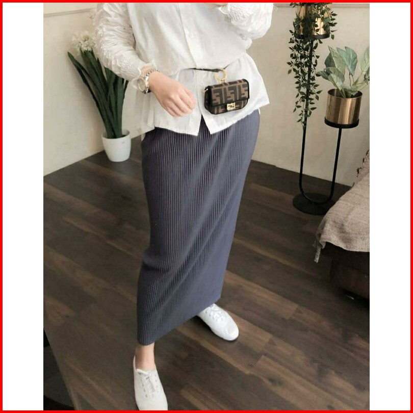 Hijabboss. Pleated Skirt Rok Plisket Span Premium Rok Span Wanita Panjang Jumbo Rok Ibu Hamil Rok Plisket Wanita Lidi