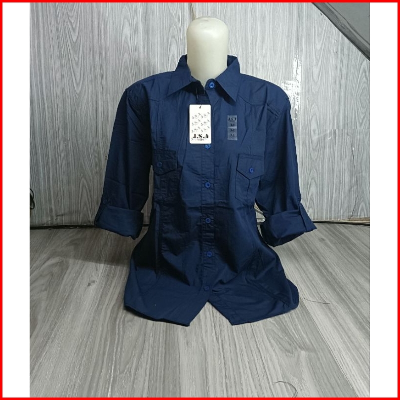 Kemeja Polos Jsa Atasan Katun Wanita Lengan Panjang Formal