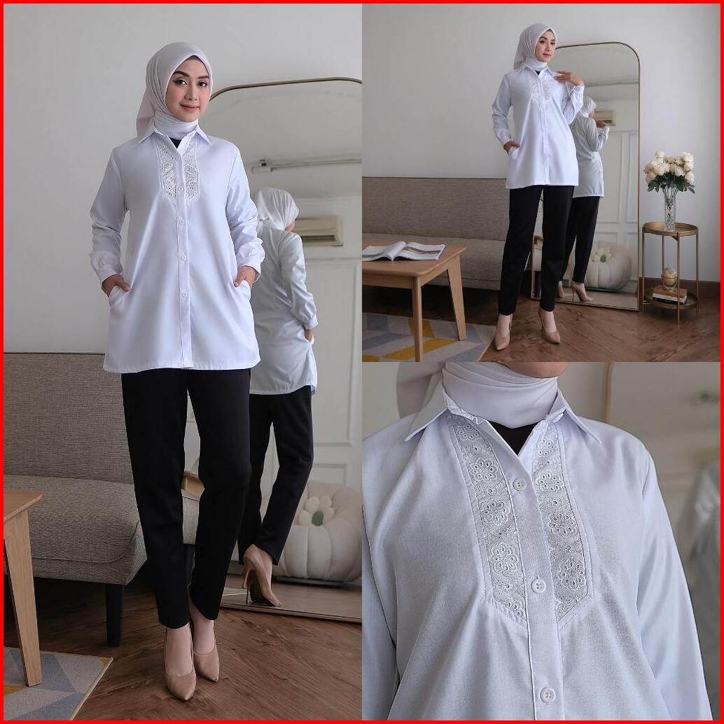 Sakha - Km 018 Baju Atasan Kemeja Putih Pns Guru Kerja Toyobo Fashion Putih Polos Wanita Terlaris