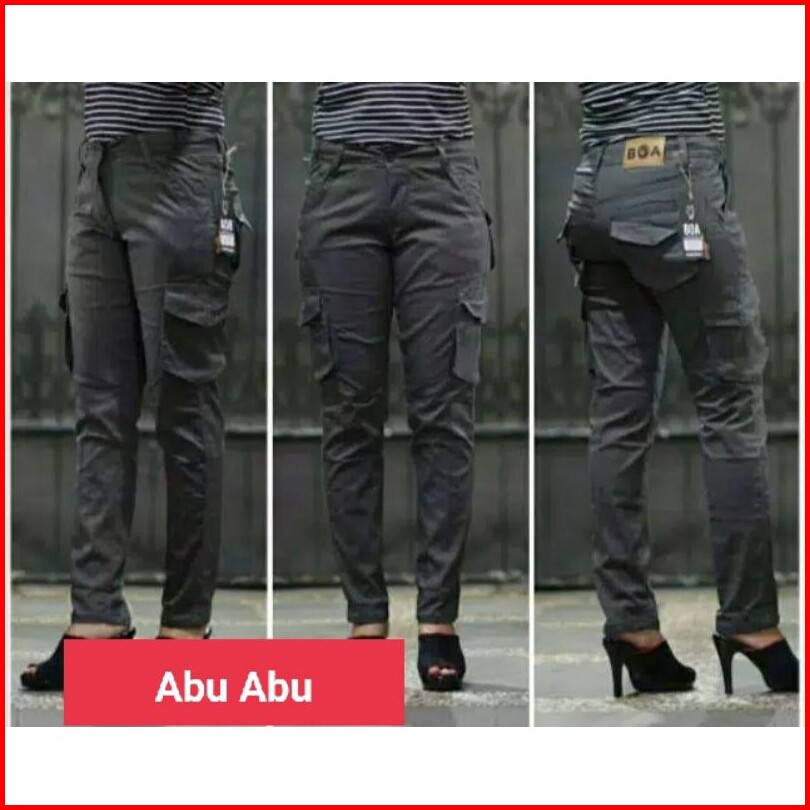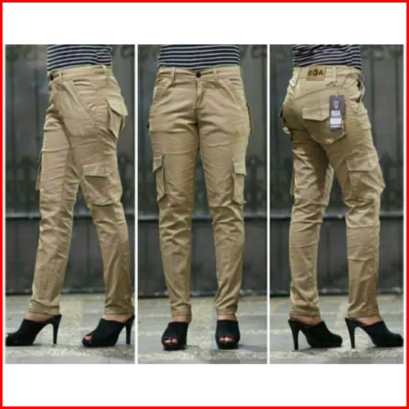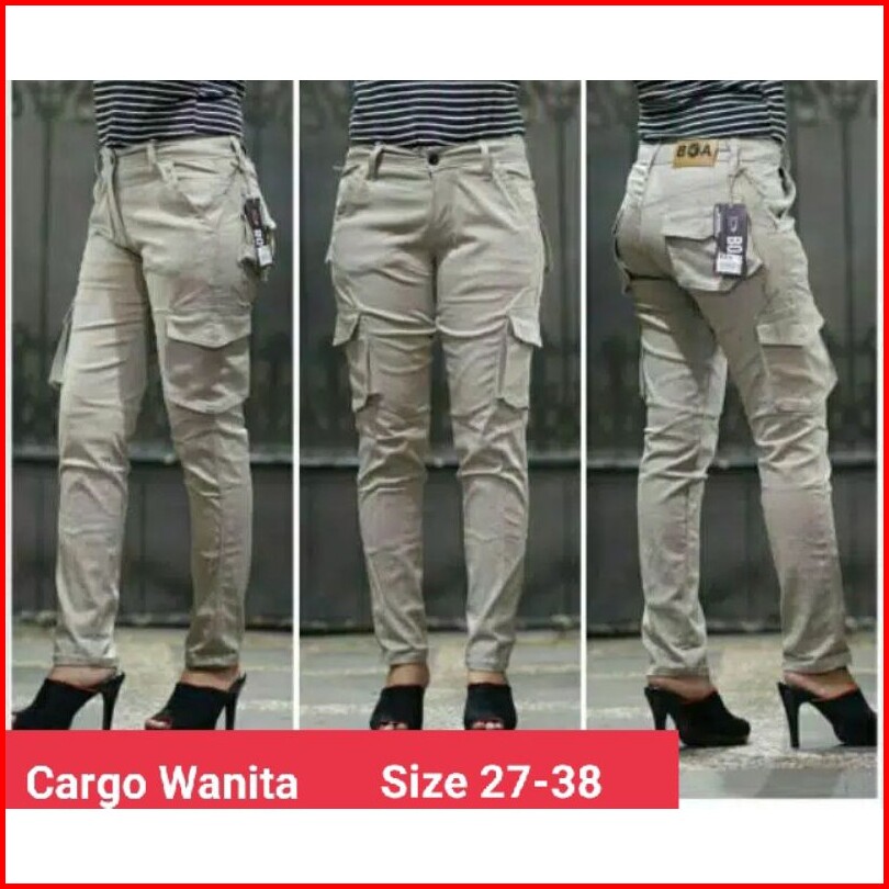 Celana Cargo Wanita Panjang Katun Stretch Melar Warna Premium