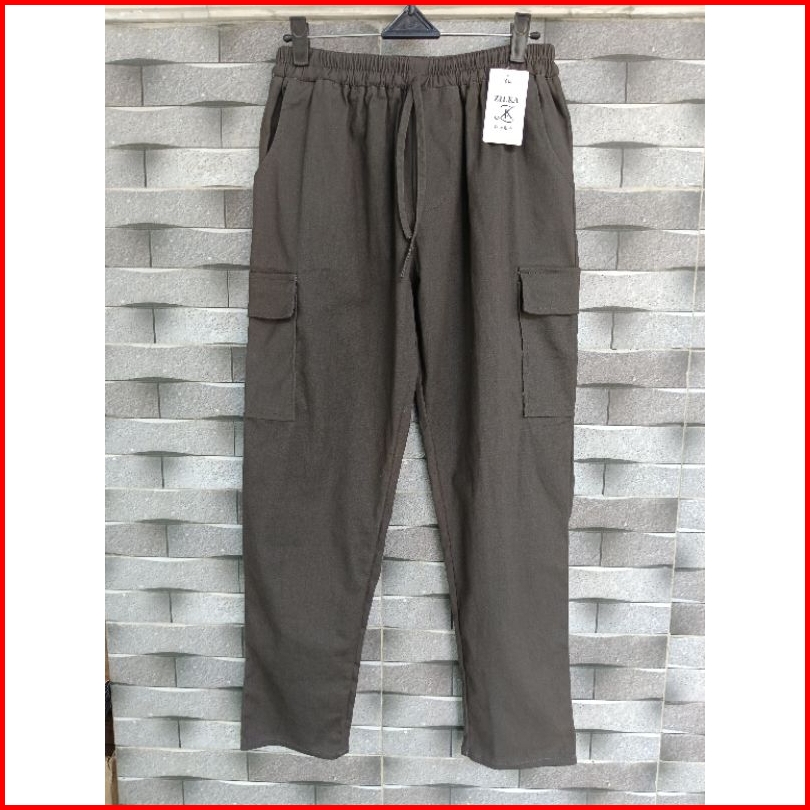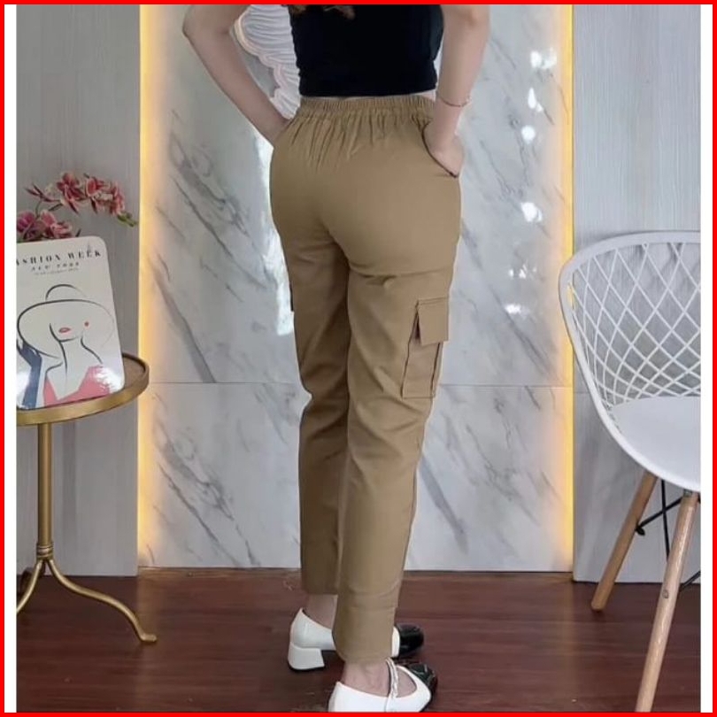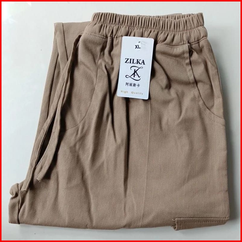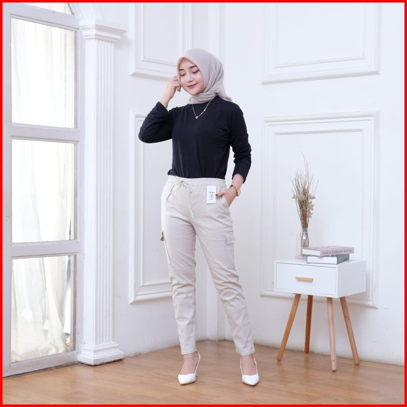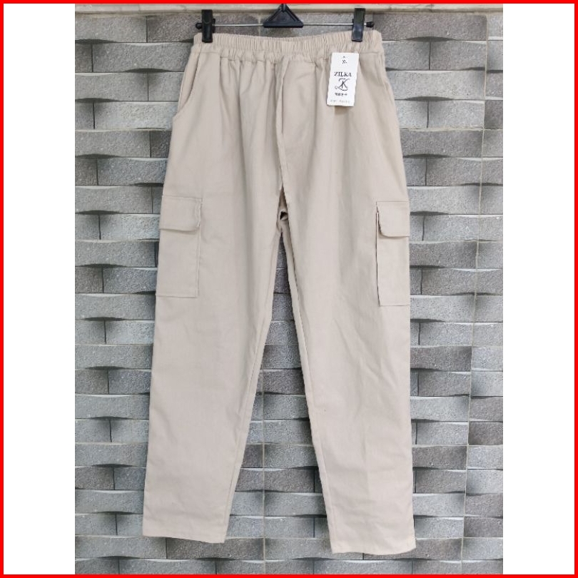 Zilka - Cargo Pants Wanita Twill Combed Premium Celana Kargo Chinos Karet Muter