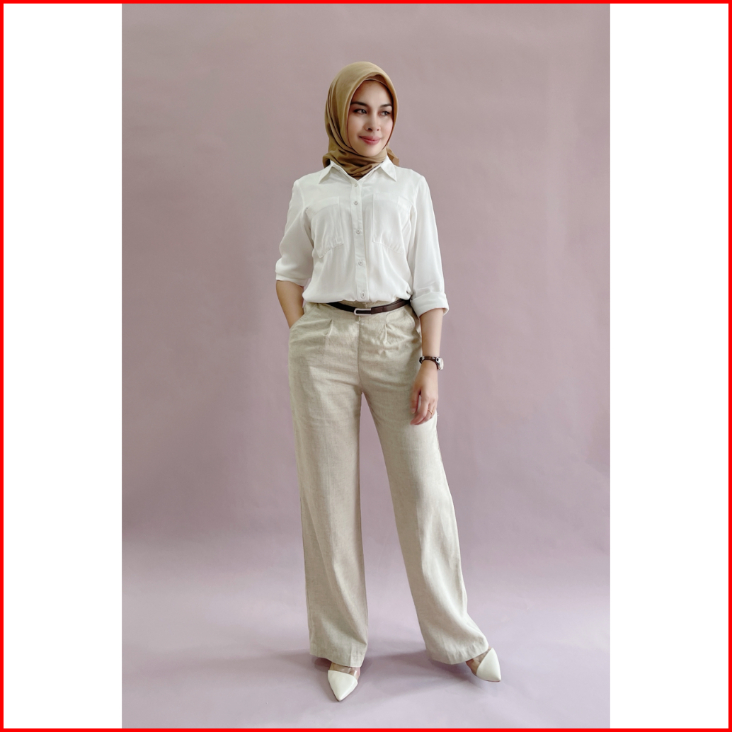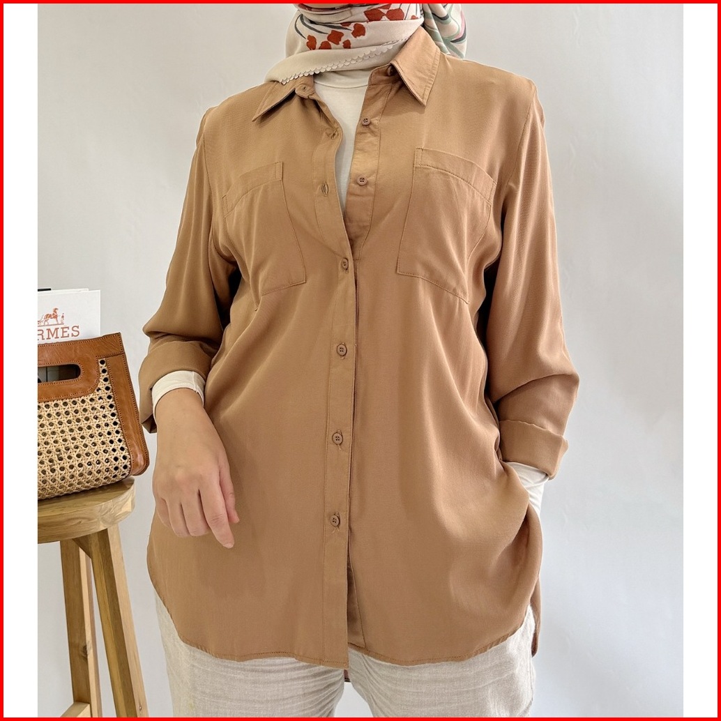 Land- Kemeja Wanita Basic Lengan Panjang Kemeja Cewek Oversize Luna Top