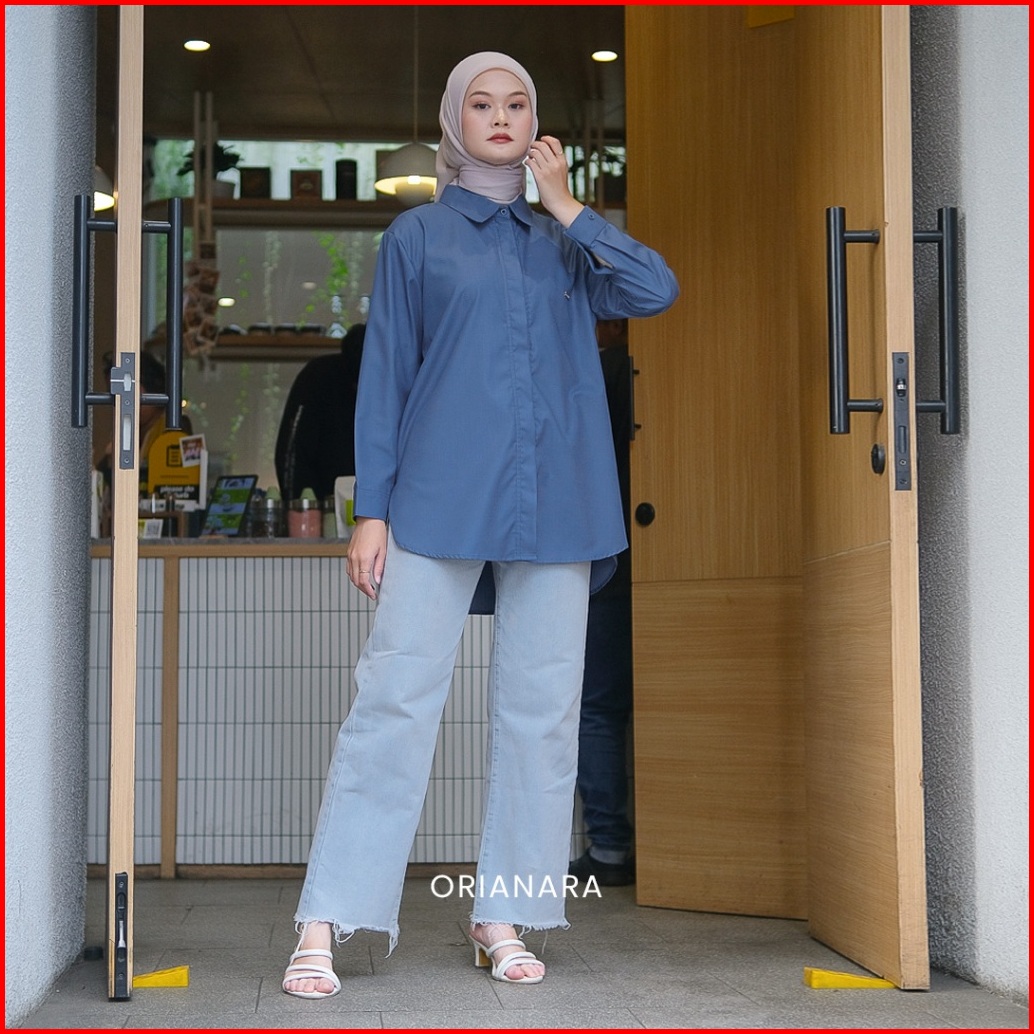 Orianara Loui Basic Shirt Kemeja Wanita Oversize Kemeja Kantor Casual Panjang
