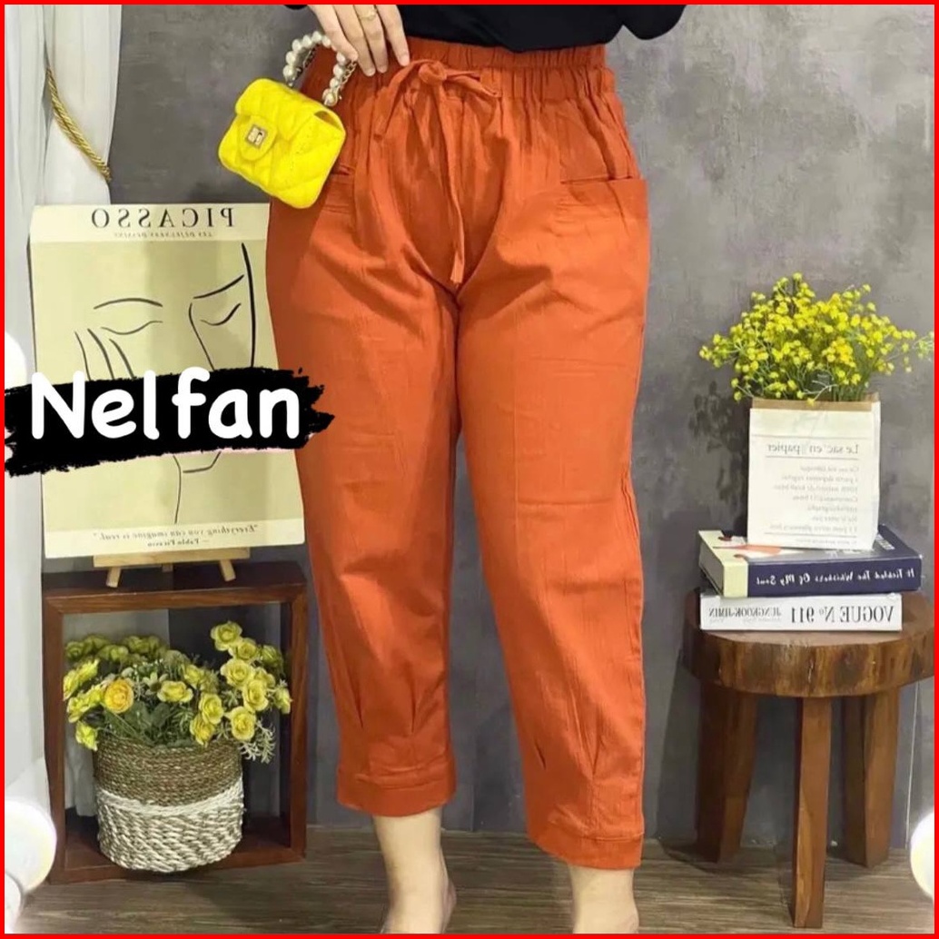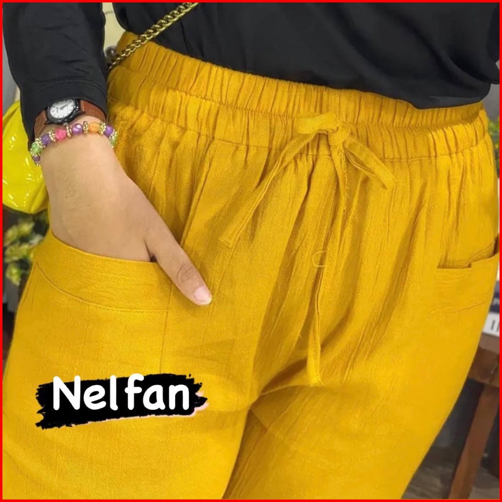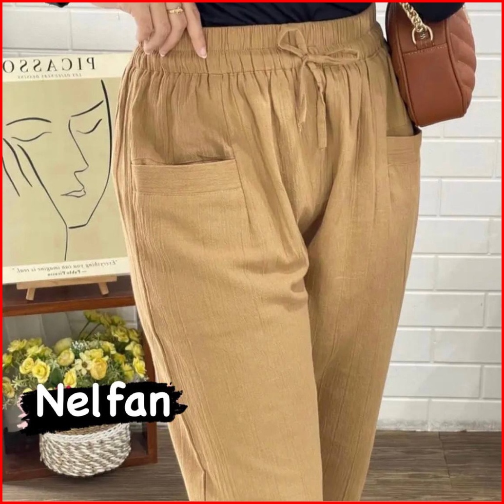 Celana Haruka Wanita 7 9 Premium Pinggang Full Karet Linen Crinkle Celana Wanita Terbaru Celana Wanita Murah Celana Wani