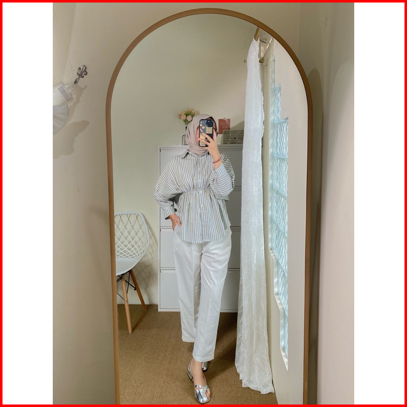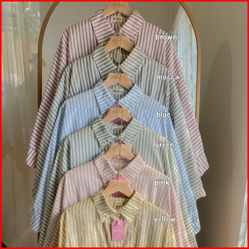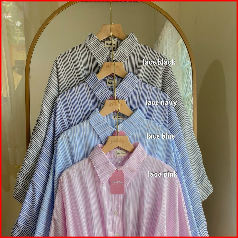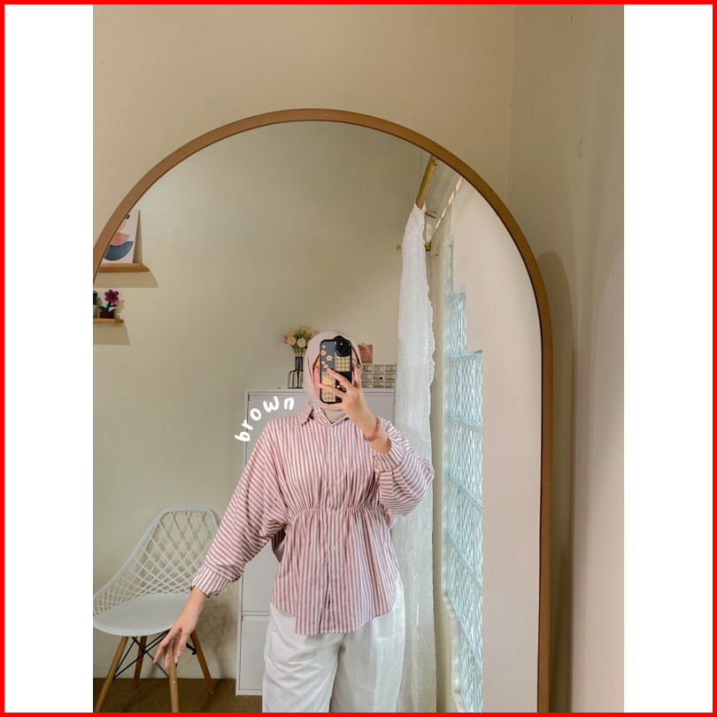 Stripe Shirt Blouse Garis Blouse Salur Kemeja Wanita Motif Garis