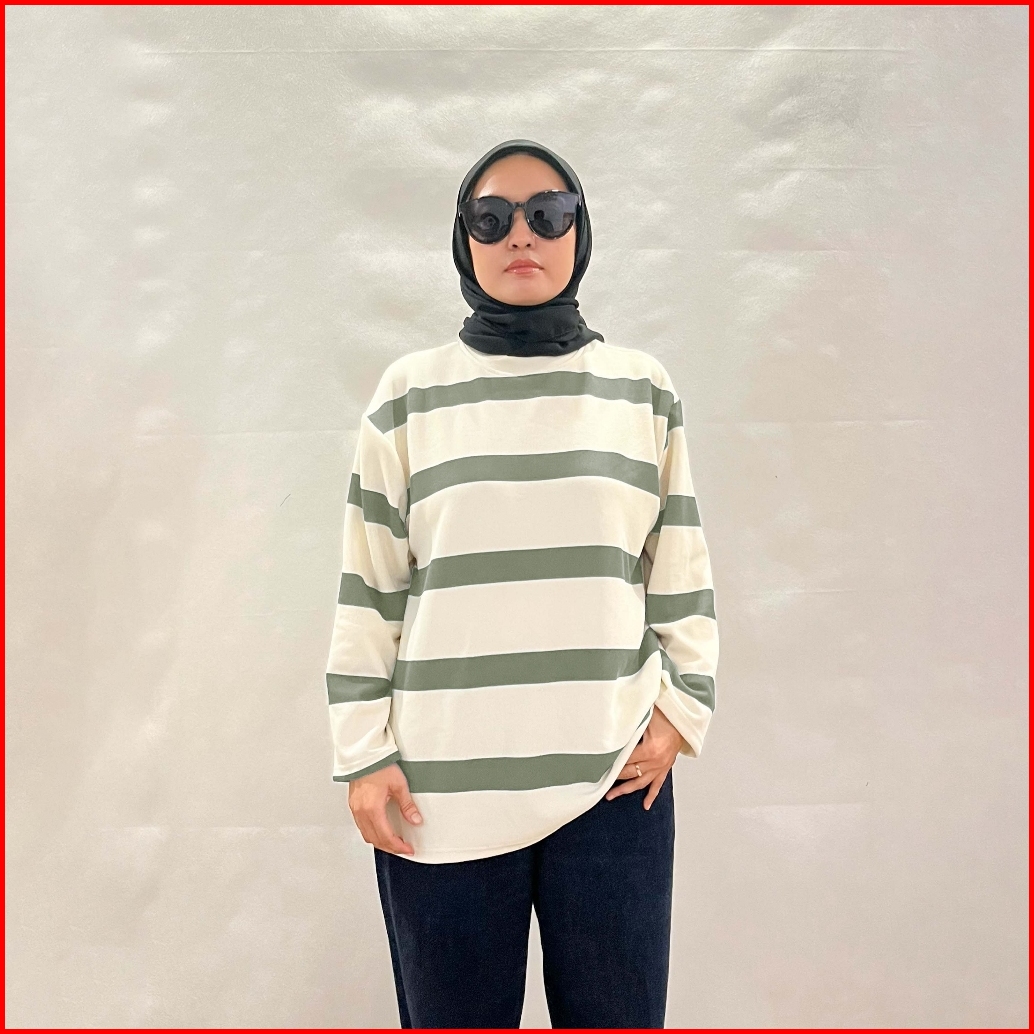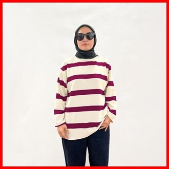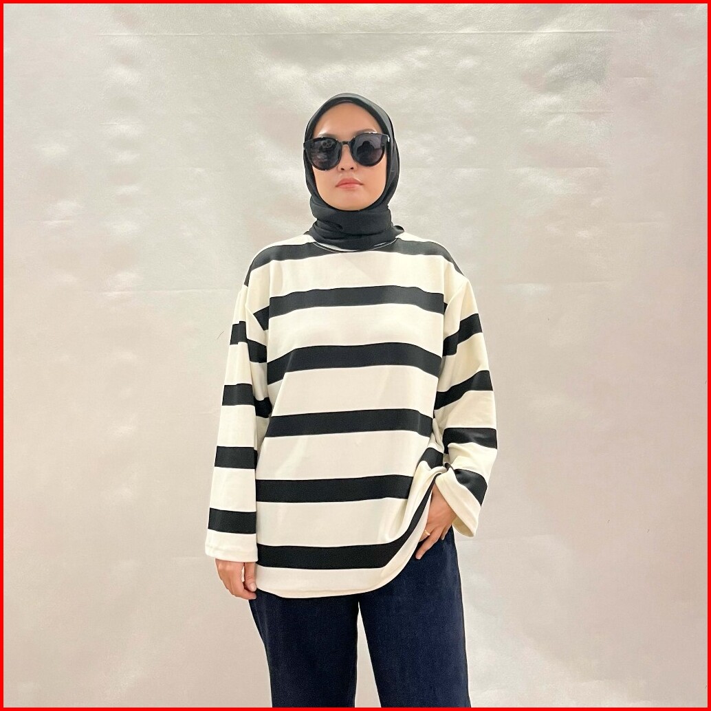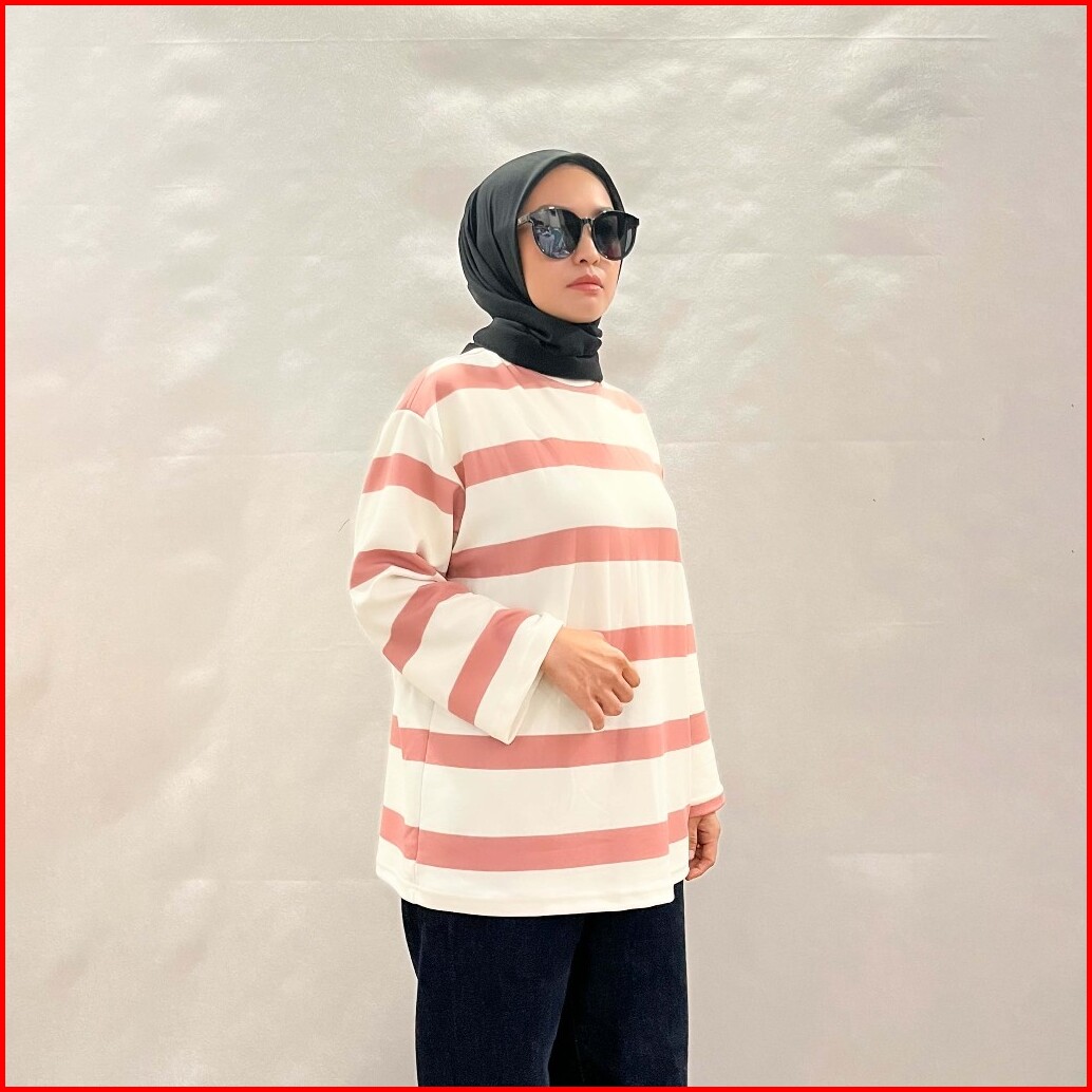 Atasan Wanita Lengan Panjang Freya Stripes Blouse Baju Oversize Lengan Panjang Femonritch