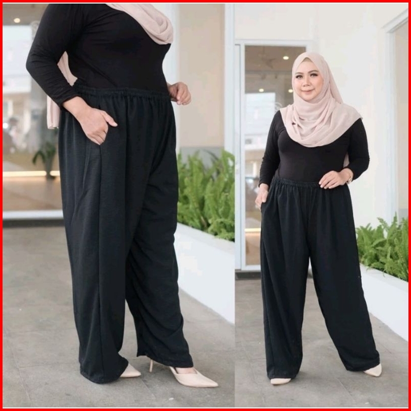 Big Size Bb 80-110kg Jennie Knit Celana Kulot Higwaist Kulot Resleting Kancing 2