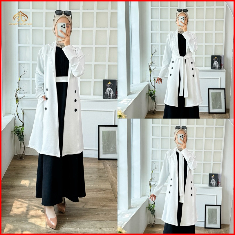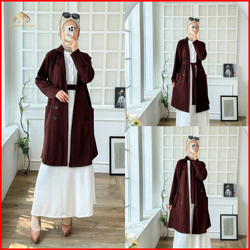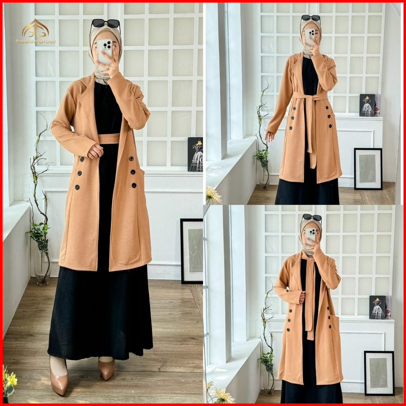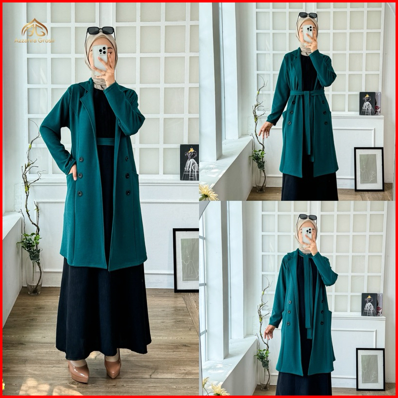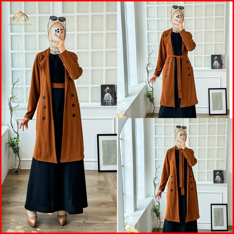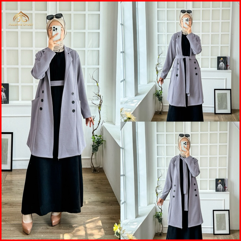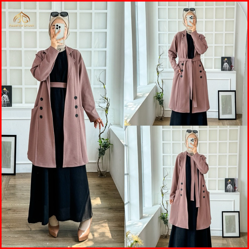 Am - Jisoo Blazer Tanpa Dalaman Wanita Long Outer Tali Ikat Pinggang Fashion Muslim Korean Style