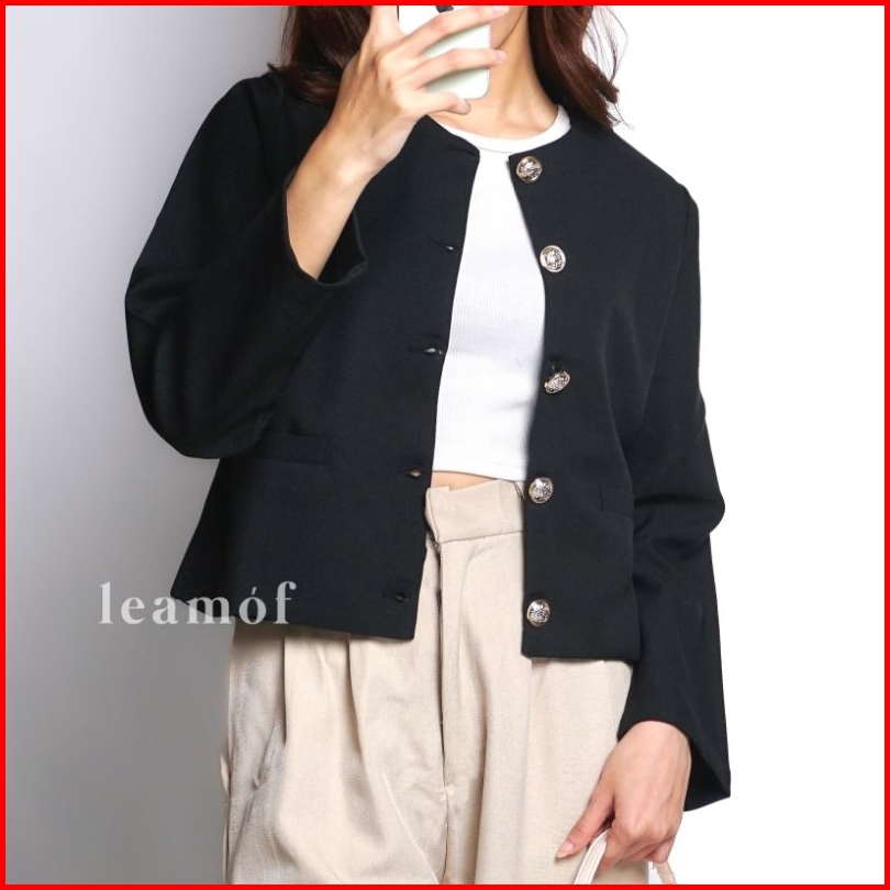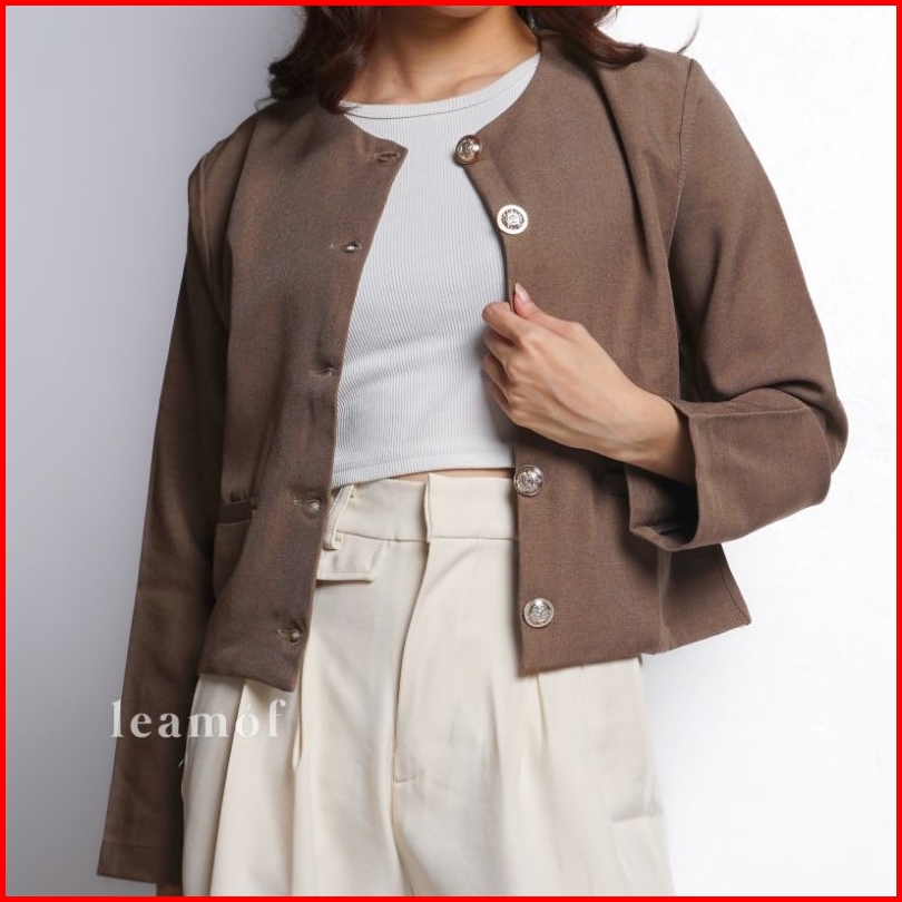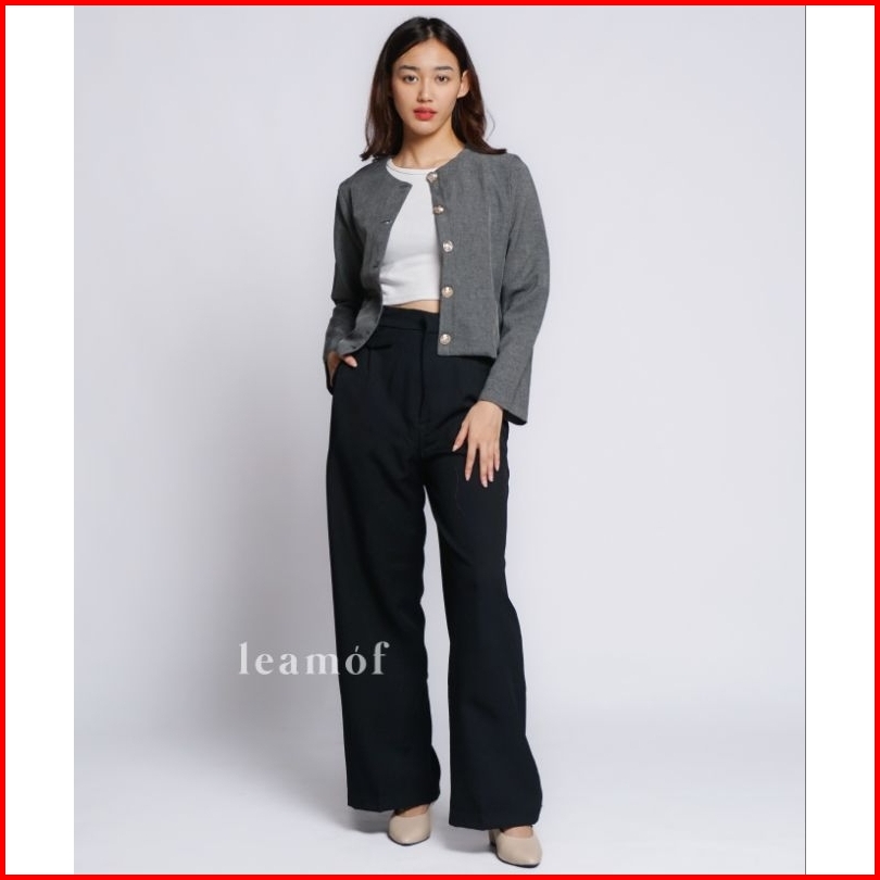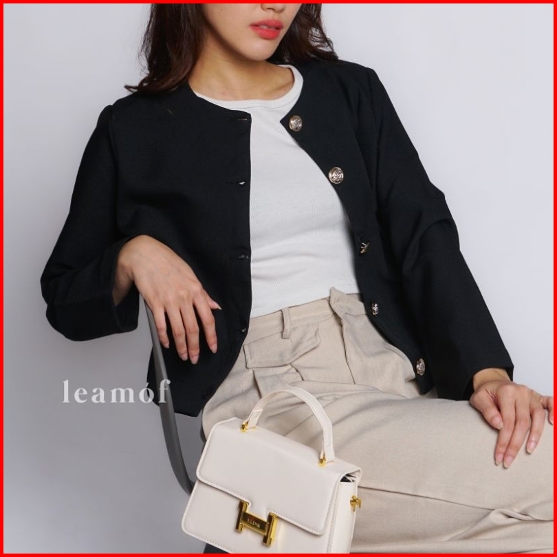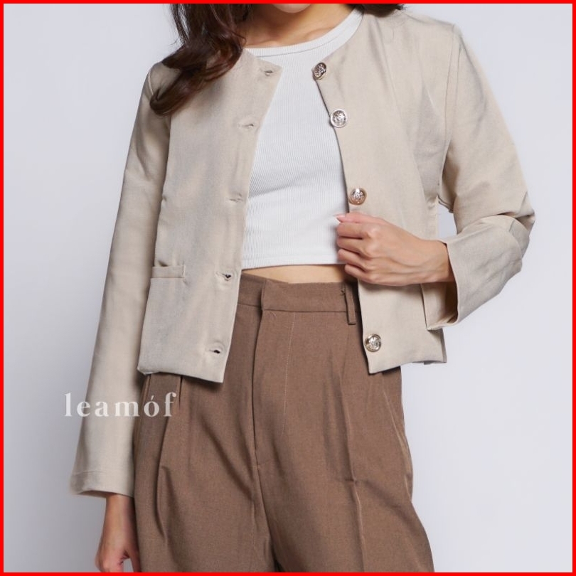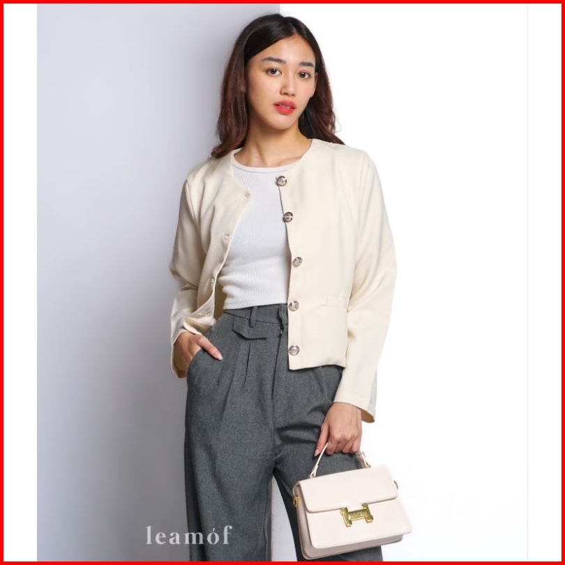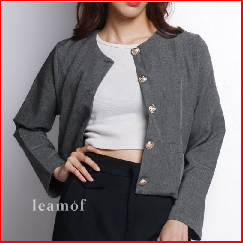 Leamof - Blazer Wanita Crop Longsleeve Outer Wanita Semi Wool
