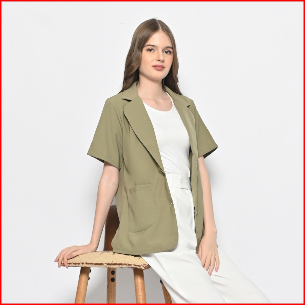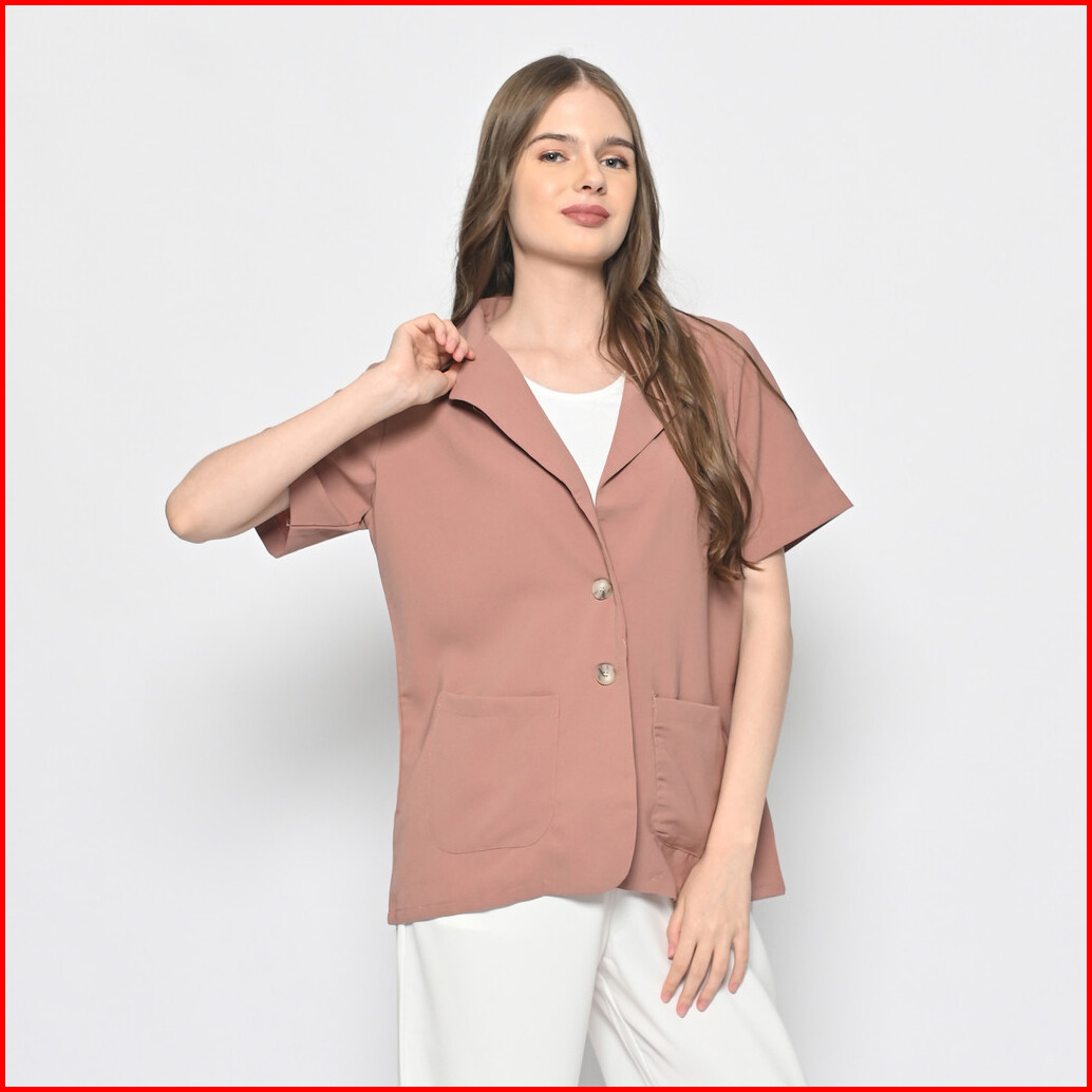 Queentin Blazer Wanita Casual 6861 Twill Tory-b Polos Lengan Pendek