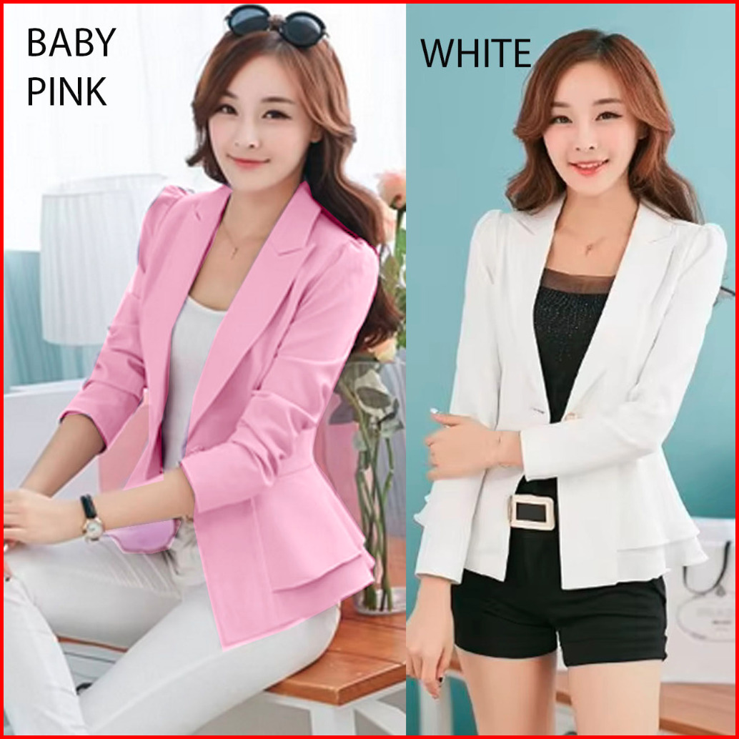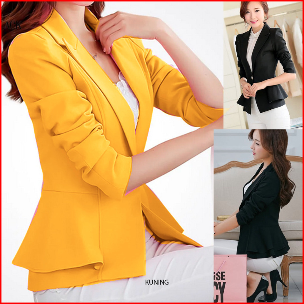 Blazer Ruffle Lengan Panjang Blazer Formal Wanita