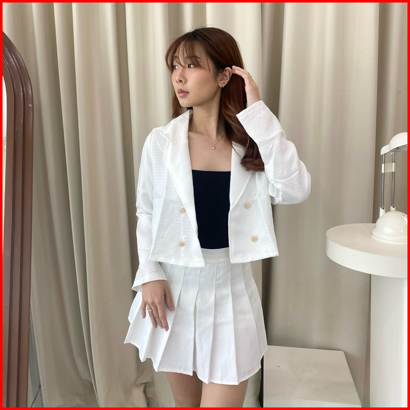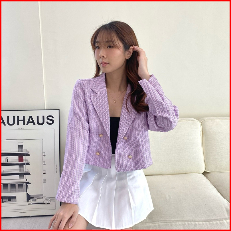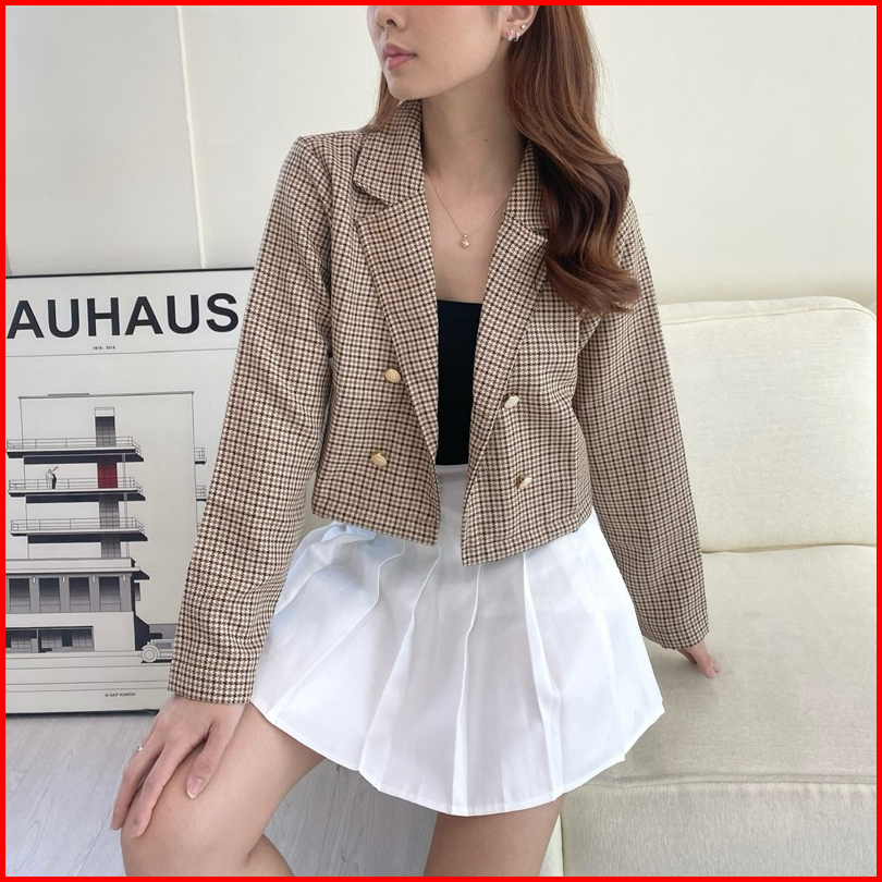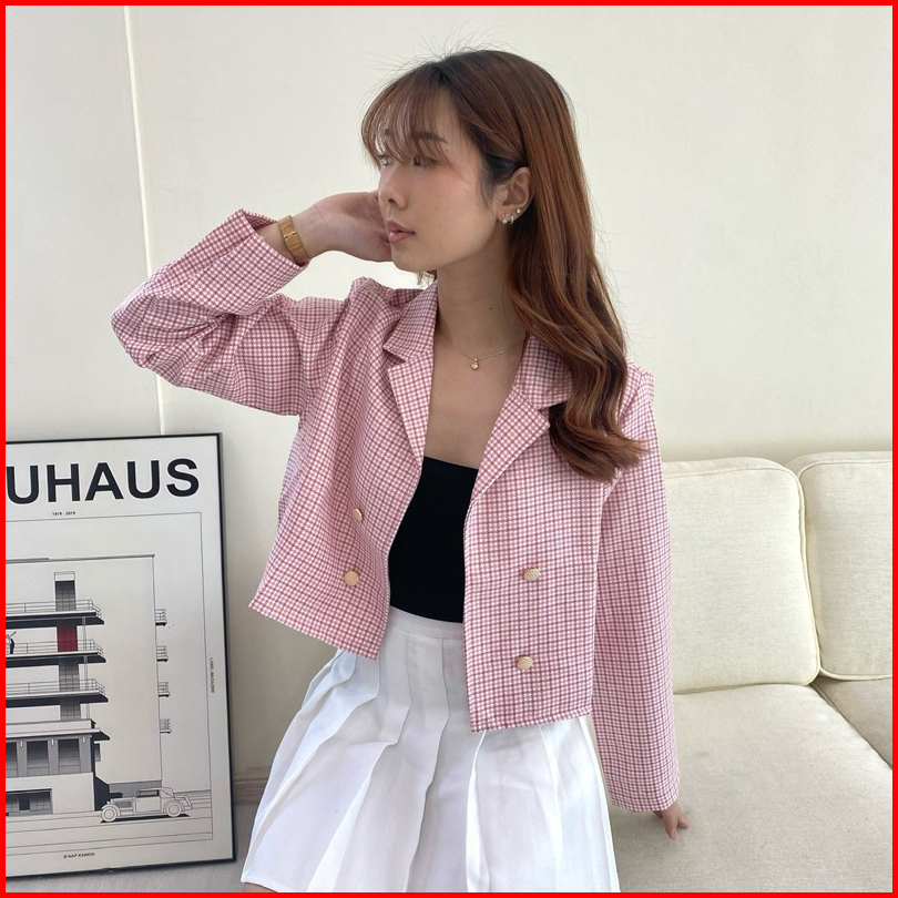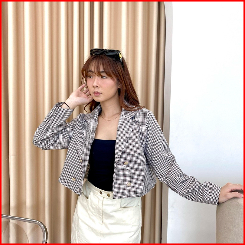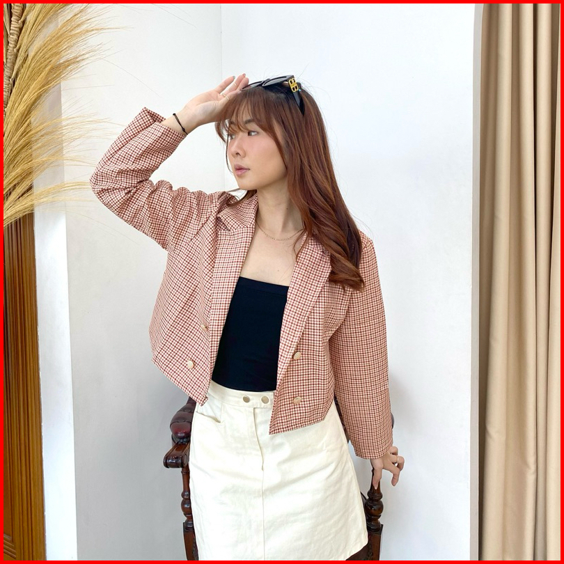 Joshin 053 - Ella Blazer Outer Crop Vintage Atasan Blazer Wanita Lengan Panjang Kotak