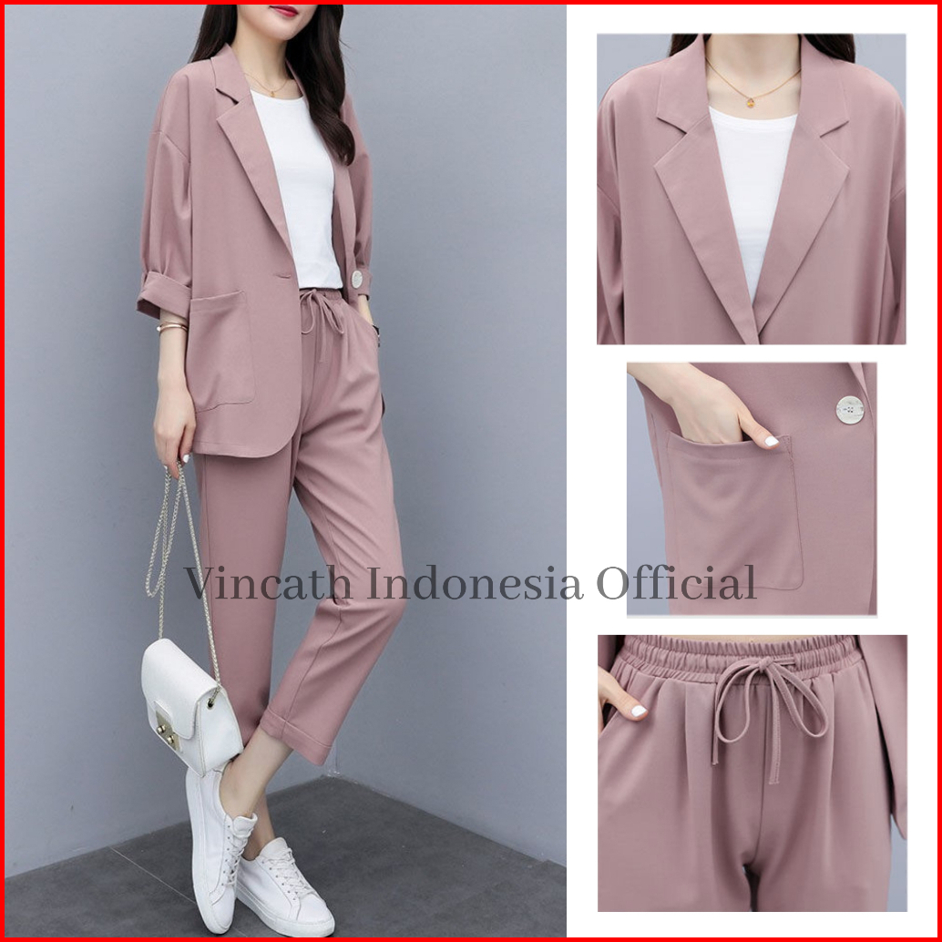 Vincath.id - Setelan Blazer Wanita Cewek Celana Kulot Panjang Bahan Terbaru Kekinian Premium Murah Remaja Dewasa Hijab K