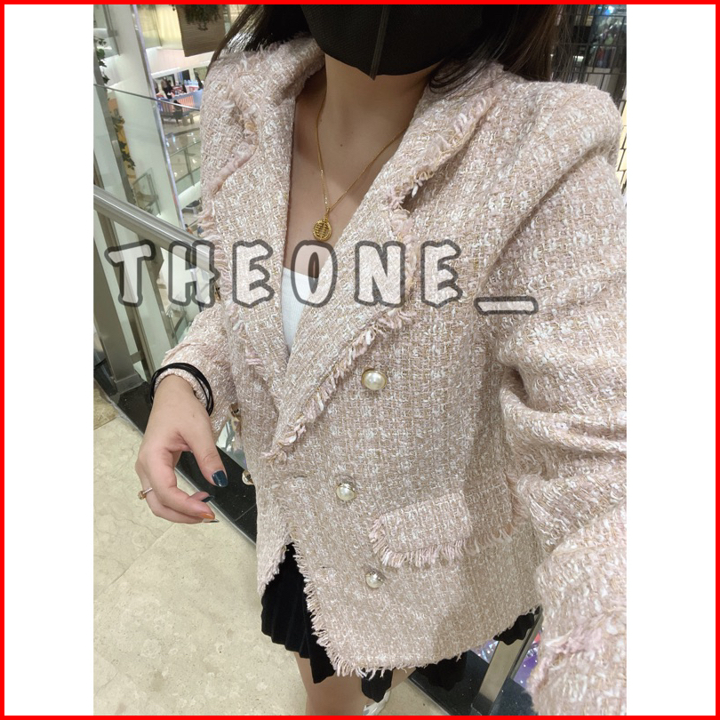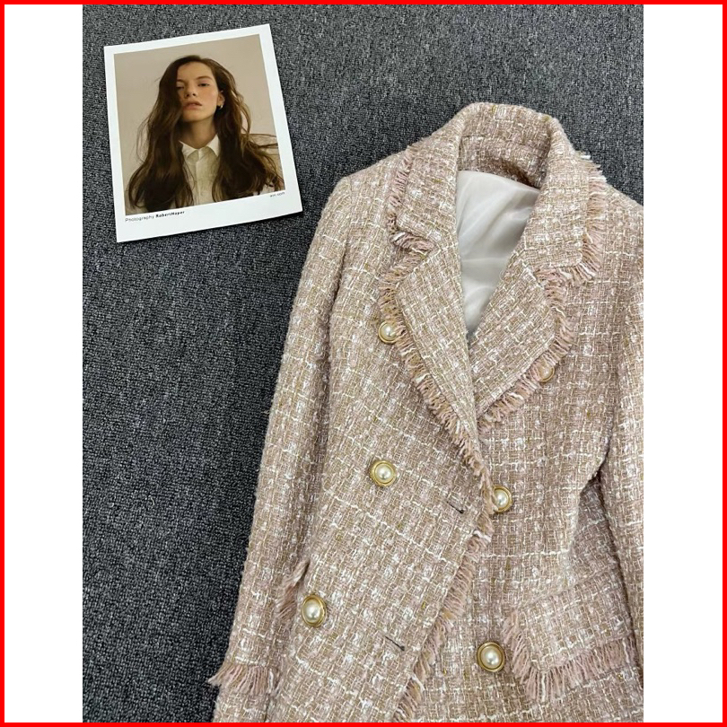 The0ne Big Size L-xl-2xl-4xl Lake Blue V Neck Long Blazer Tweed Double Breasted