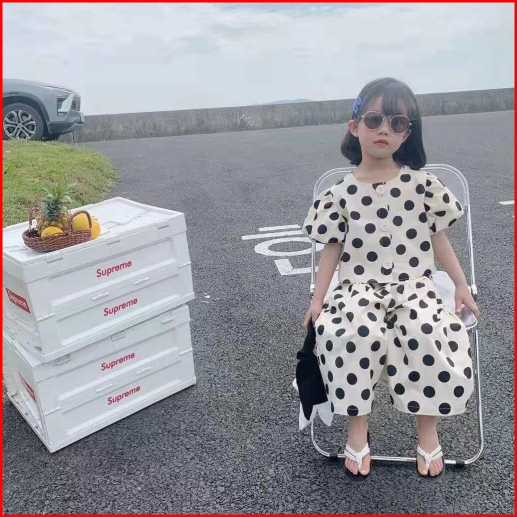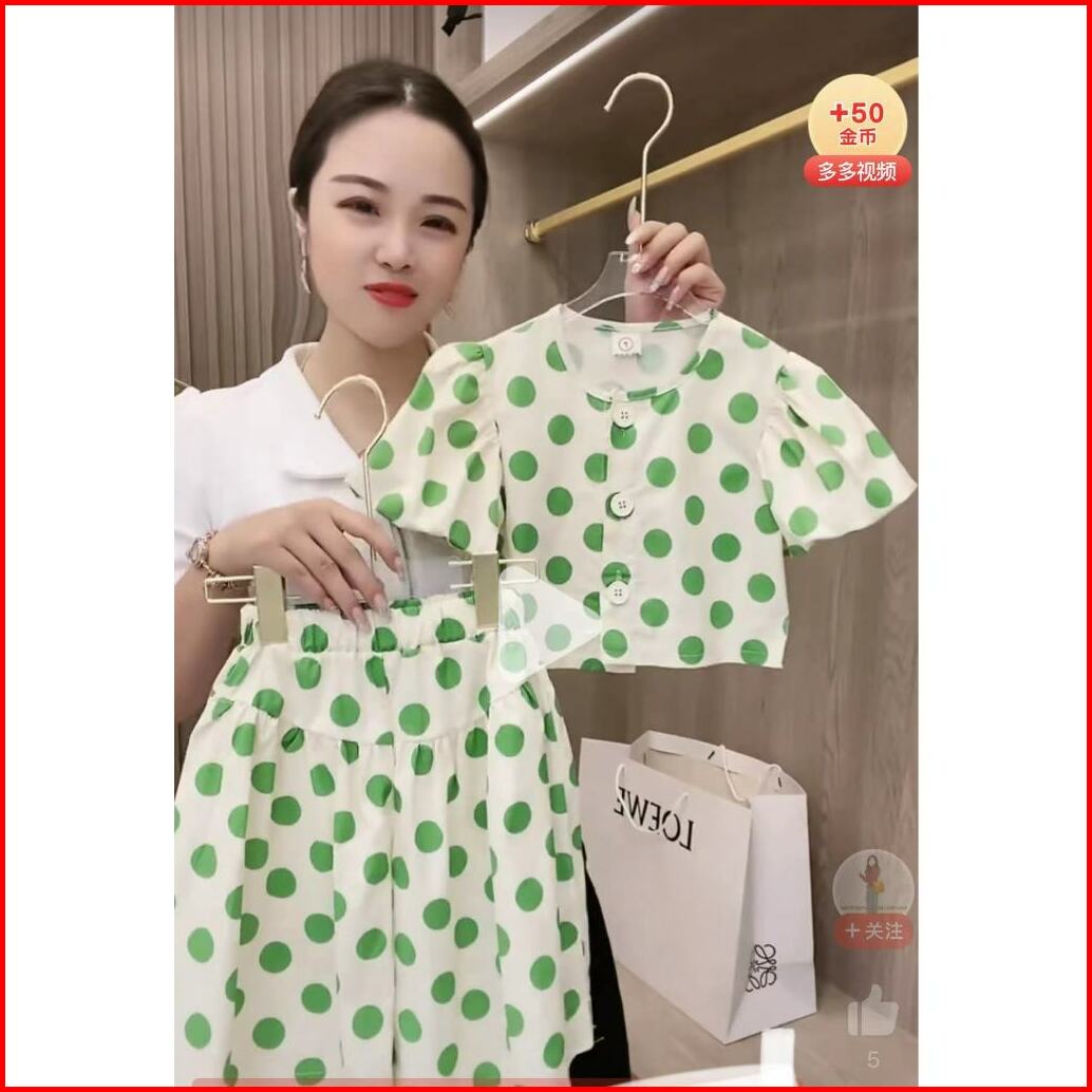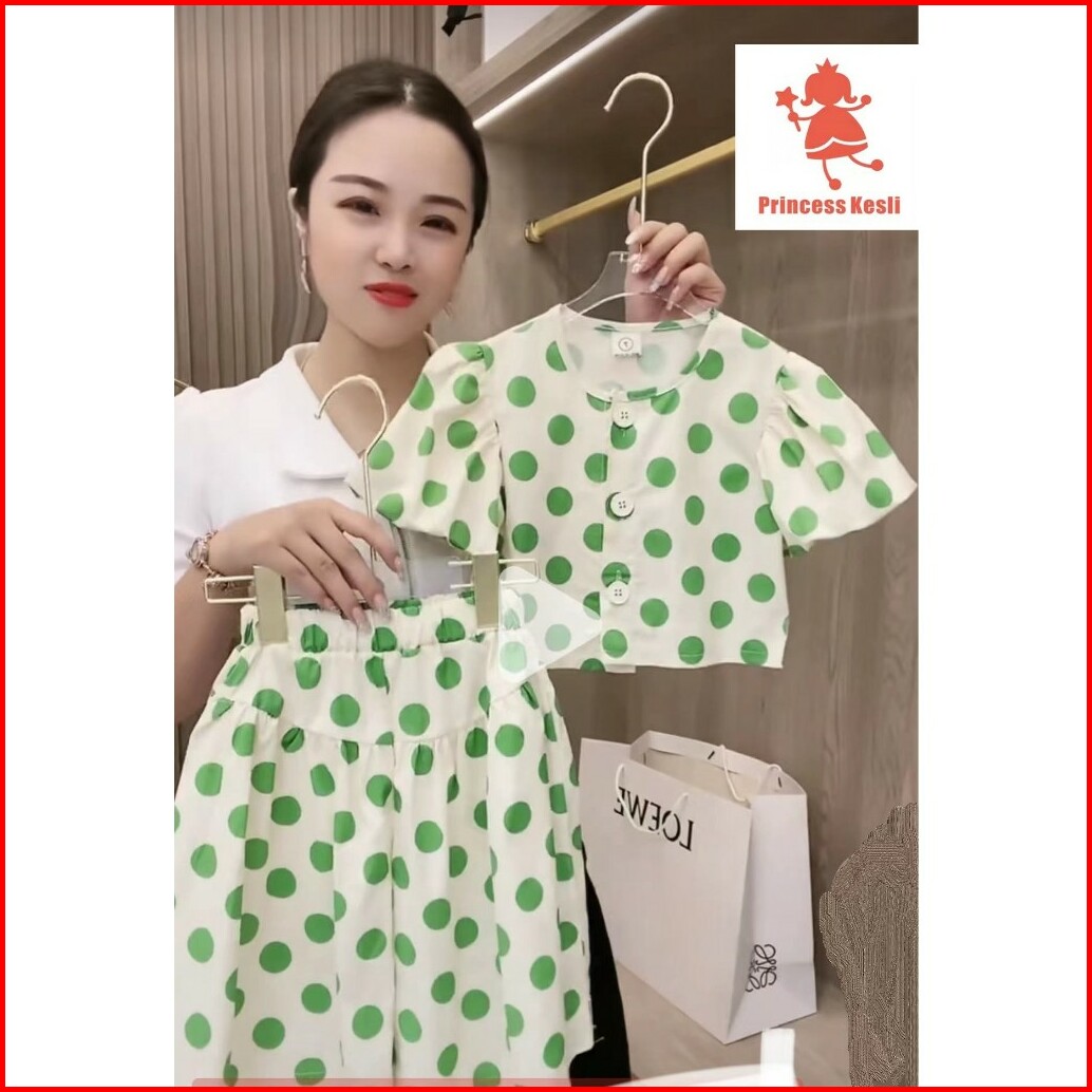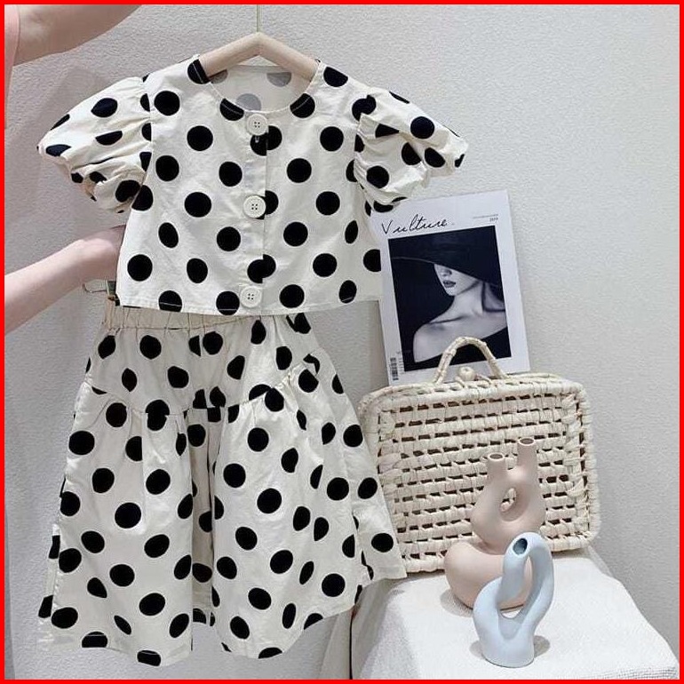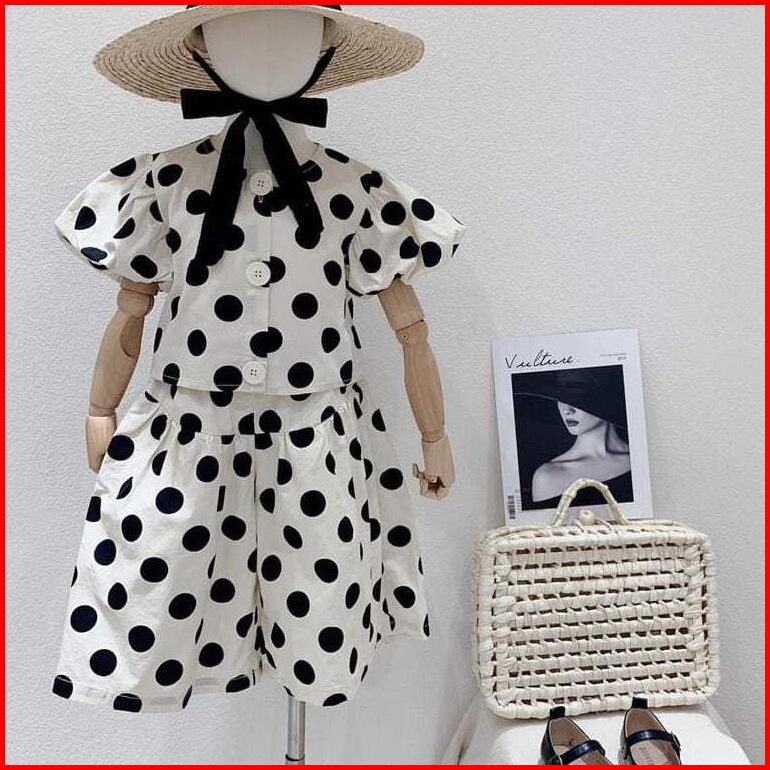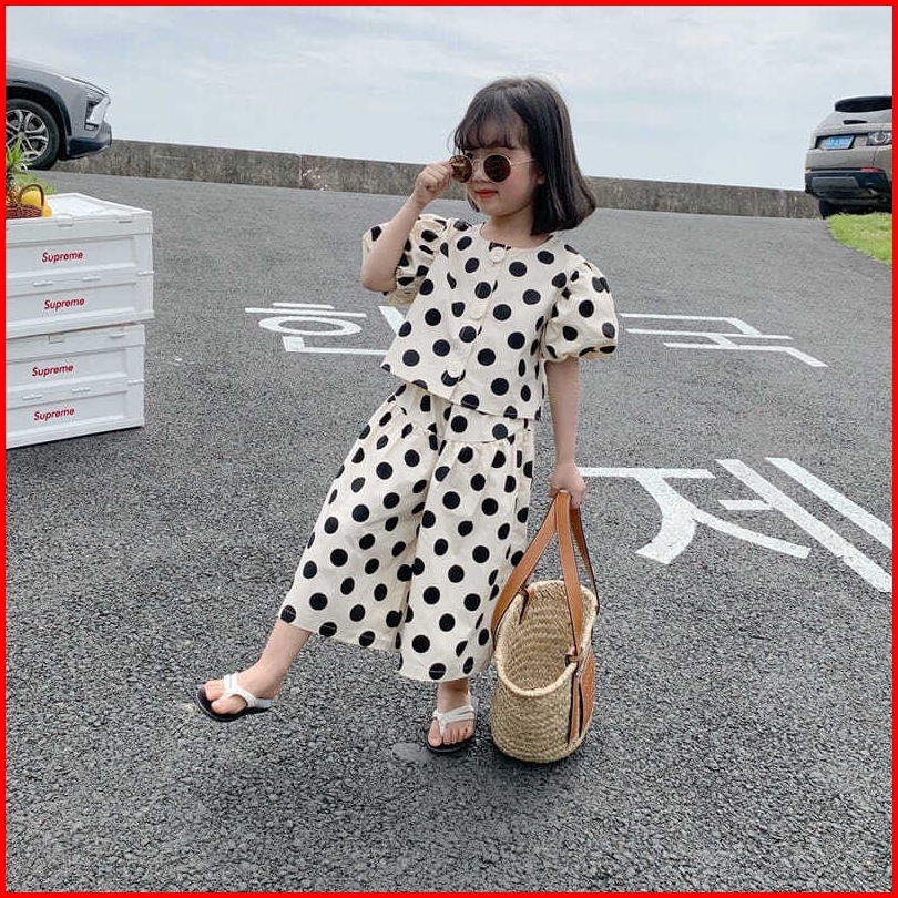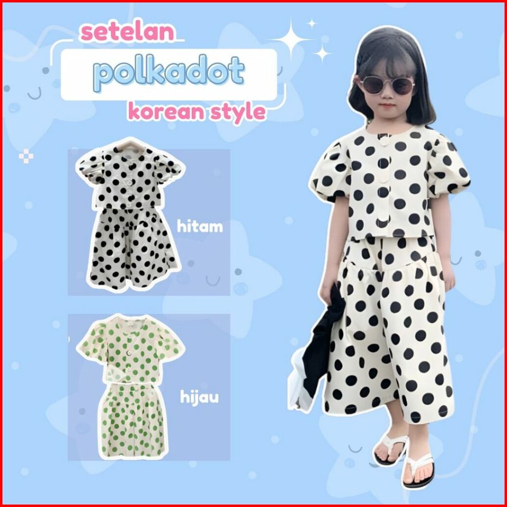 Hompimpaw.2-11 Tahun Setelan Baju Anak Perempuan Usia Polkadot Musim Panas Anak Perempuan 2024 Celana Lebar Anak-anak Se