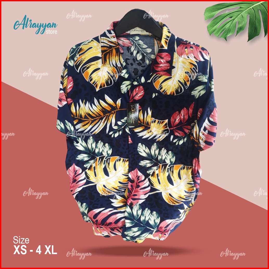 Alrayyan Store - Kemeja Daily Full Pantai Full Print Navy Floral Lengan Pendek Pria Wanita Baju Santai Hawalili Motif Bu