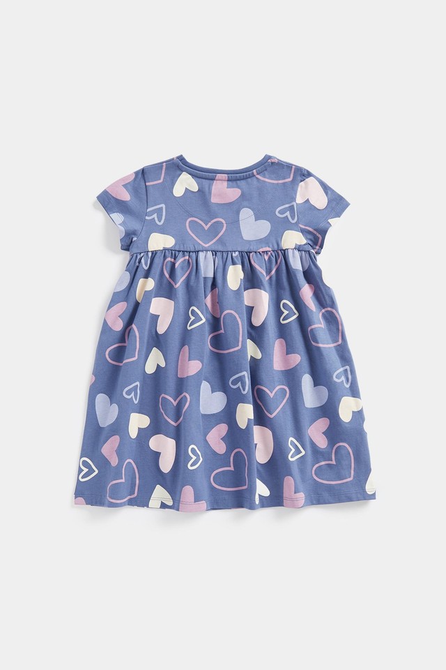 MOTHERCARE BLUE HEARTS JERSEY DRESS - DRESS ANAK PEREMPUAN (BIRU) - 6-7 YEARS