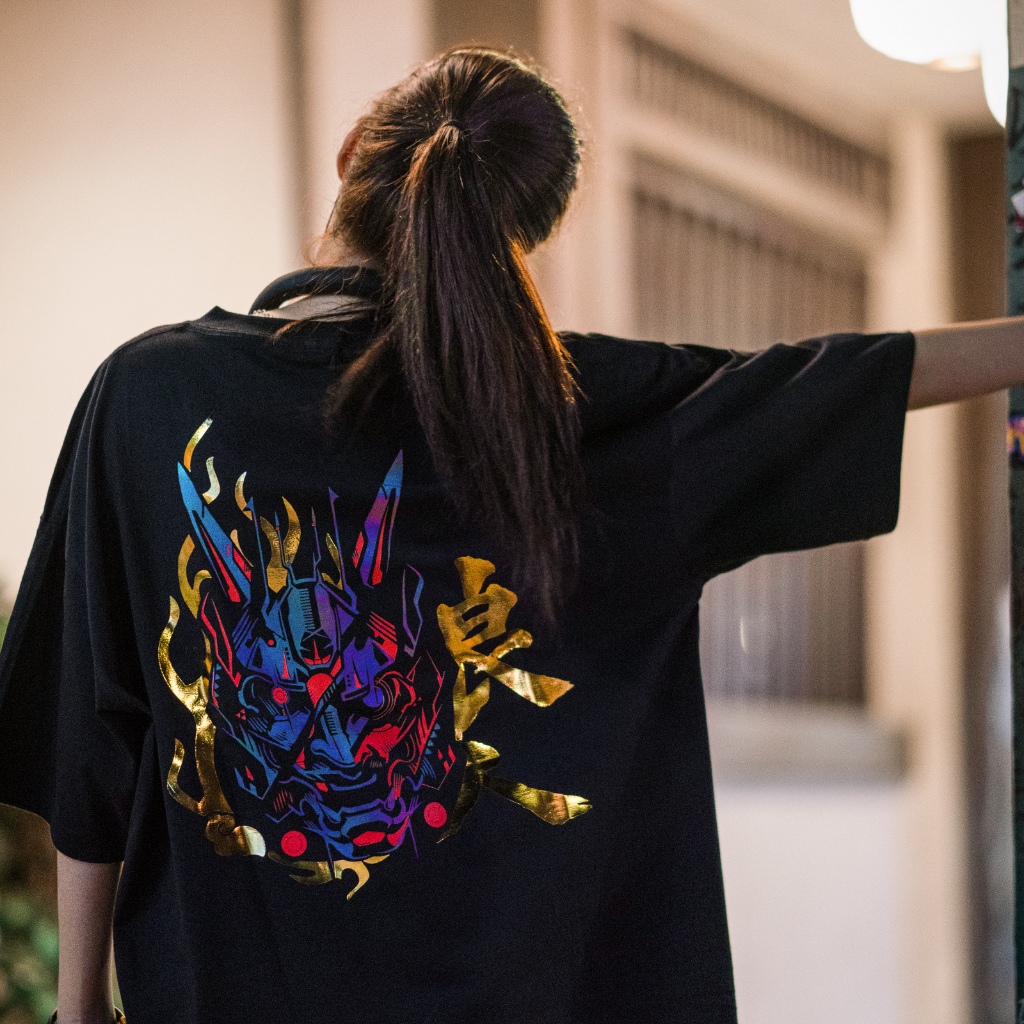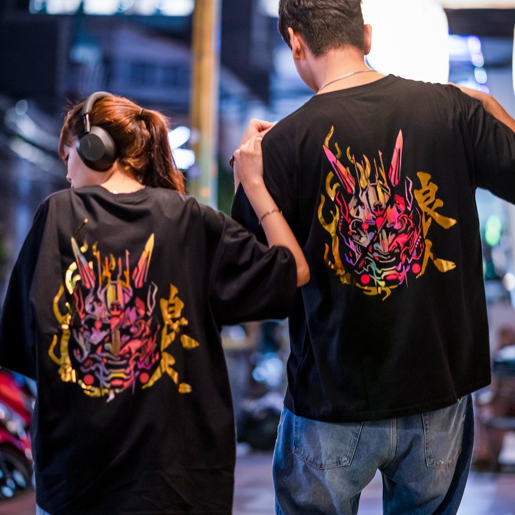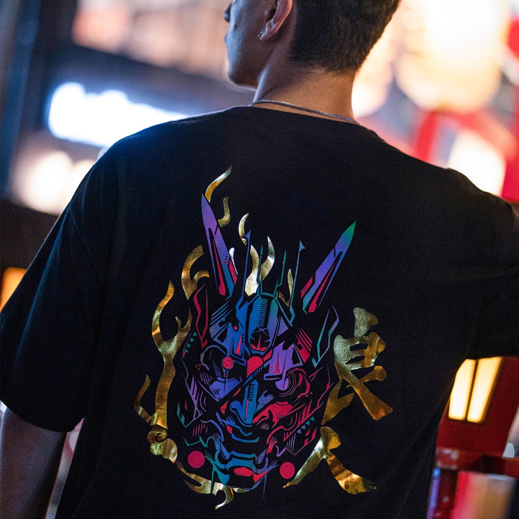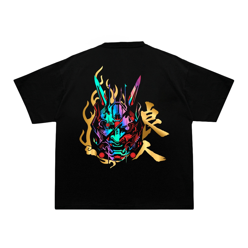 F.V.C.K ID - Ronin Warrior Reflective Rainbow - Black Oversize T-shirt Cotton 20s