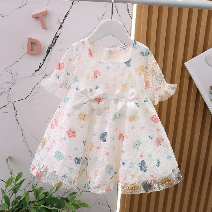 BAJU ANAK DRESS PEREMPUAN MOTIF BUTTERFLY BAHAN TILE FURING IMPORT - PUTIH, M