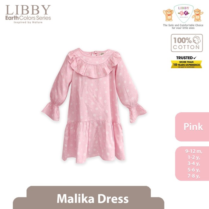 LIBBY DRESS ANAK PEREMPUAN 6 BULAN-8 TAHUN MALIKA DRESS (1 PCS) GAMIS - MALIKA PINK, 1-2 TAHUN