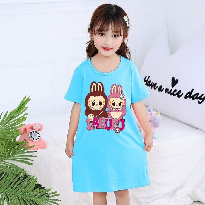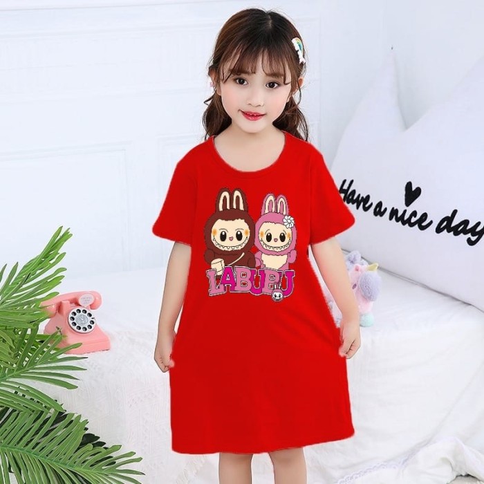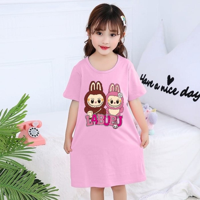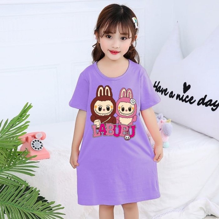 DASTER ANAK PEREMPUAN USIA 2-13 TAHUN MOTIF LABUBU DRESS ANAK LABUBU - UNGU, S 2-3 TAHUN