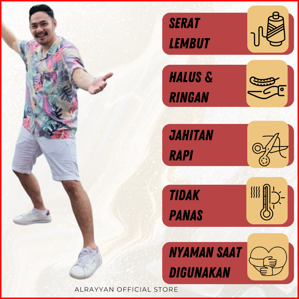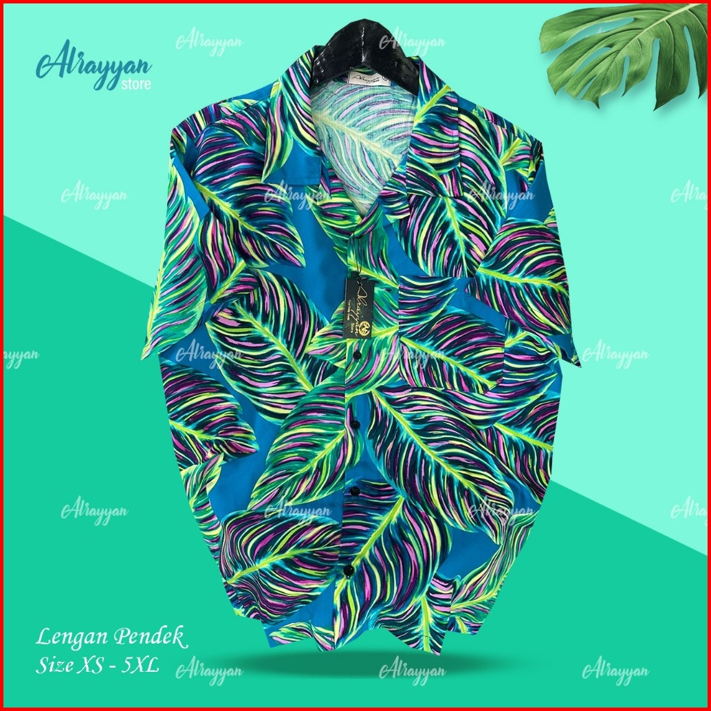 Alrayyan Store - Kemeja Hawai Rayon Motif Hijau Daun Lengan Pendek Pria Wanita Baju Pantai Jumbo