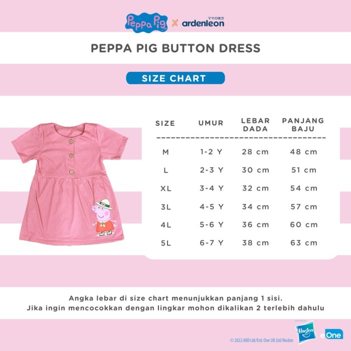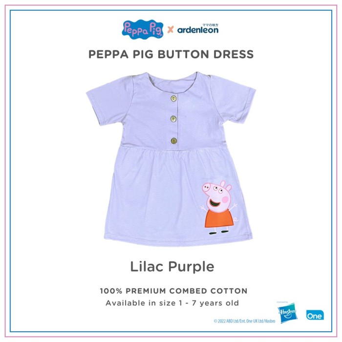 ARDENLEON PEPPA PIG ROK ANAK BUTTON DRESS - LILAC PURPLE, M (1-2 YR)