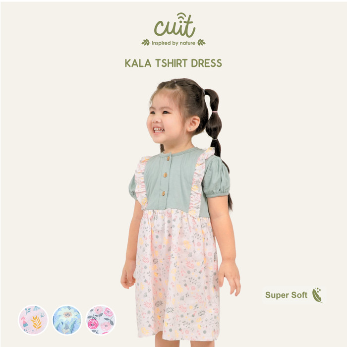 CUIT KALA TSHIRT DRESS ANAK BAYI 1 - 4 TAHUN - RUFFLE DRESS MOTIF FLORAL LUCU - BLUE ASTER, L (1-2 TAHUN)