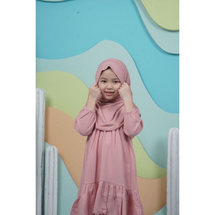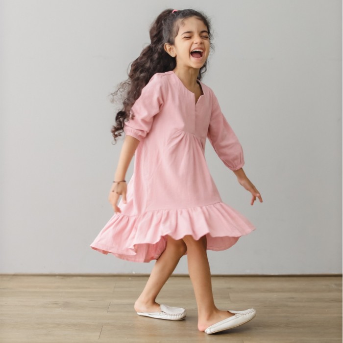MINI COTTONS DRESS ANAK PEREMPUAN LENGAN PANJANG - KHAKI, 3-4 TAHUN